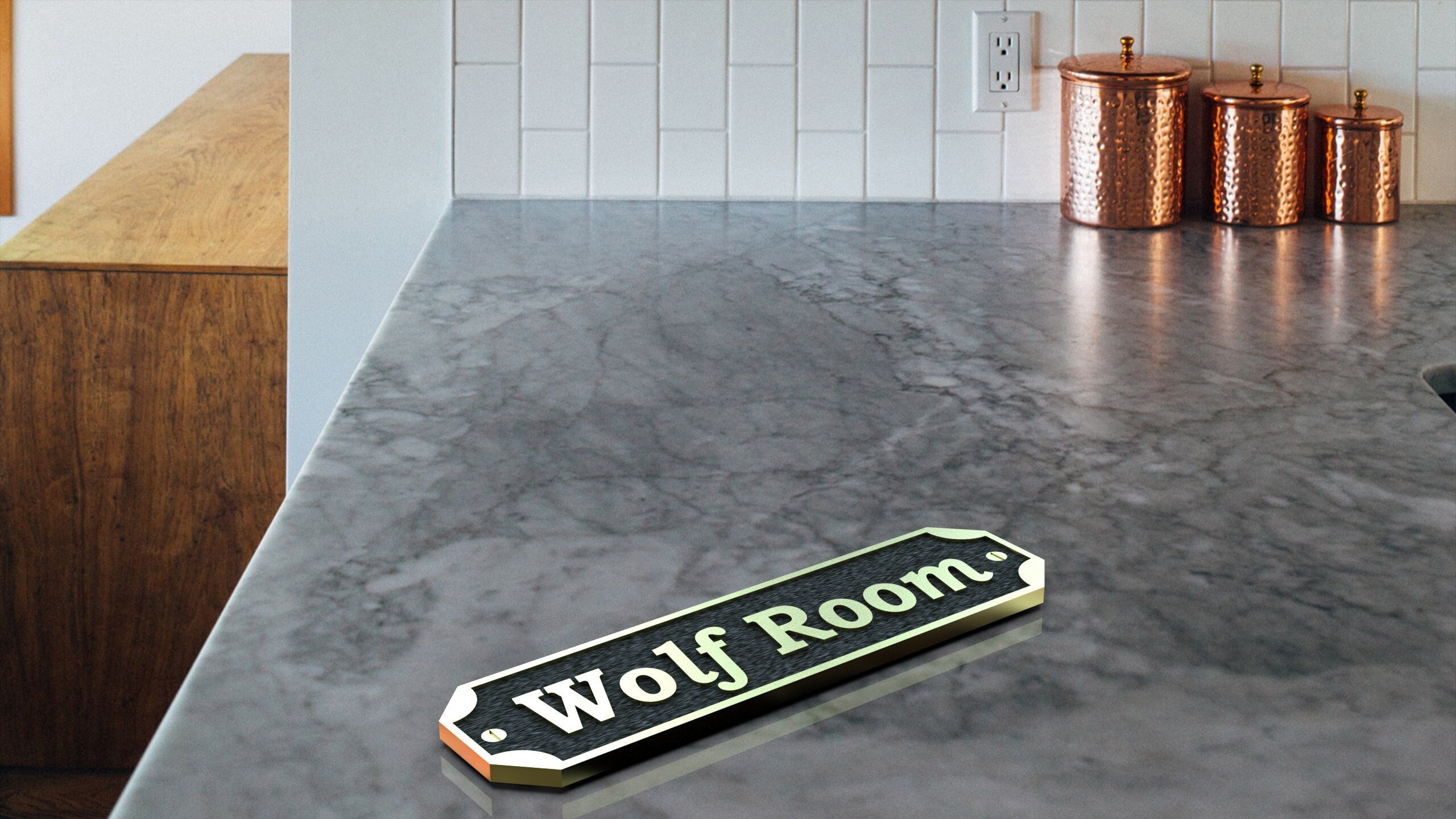 This solid-brass nameplate is perfect for personal nameplates, brand signs, door and exhibition signage, leather tags, machinery labels, artwork plates, and home or street addresses.