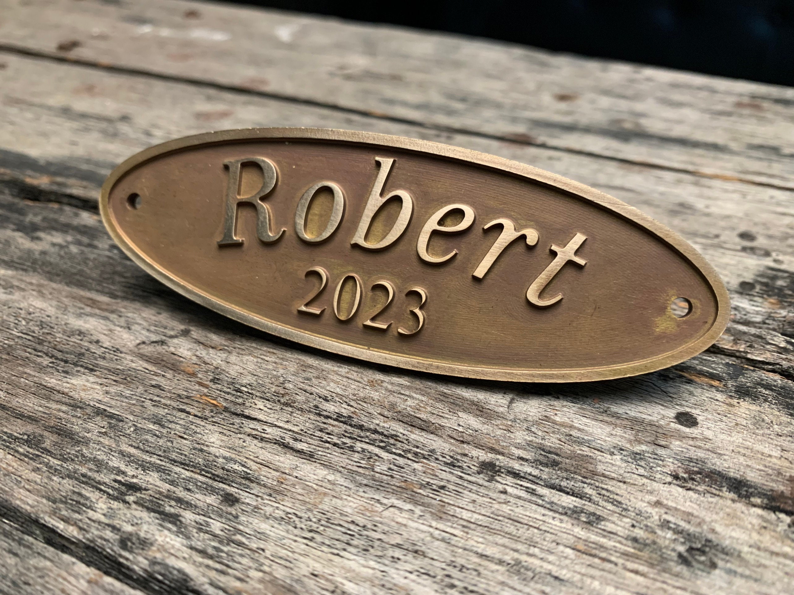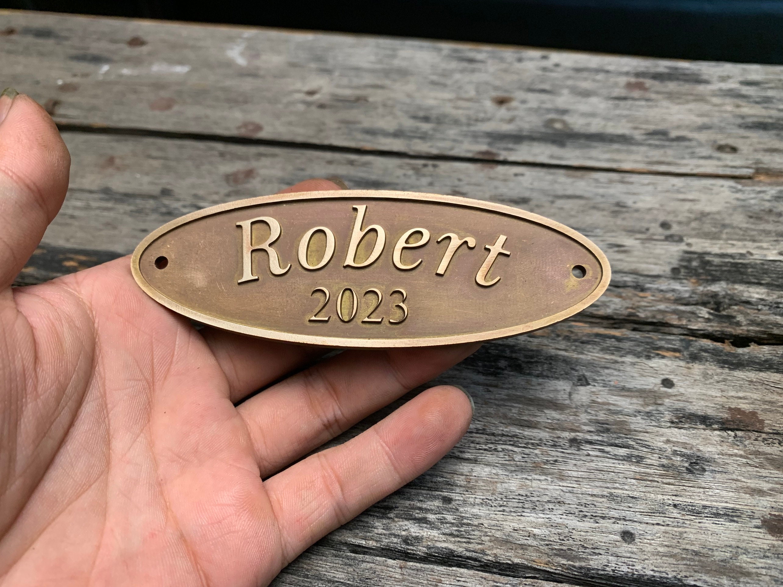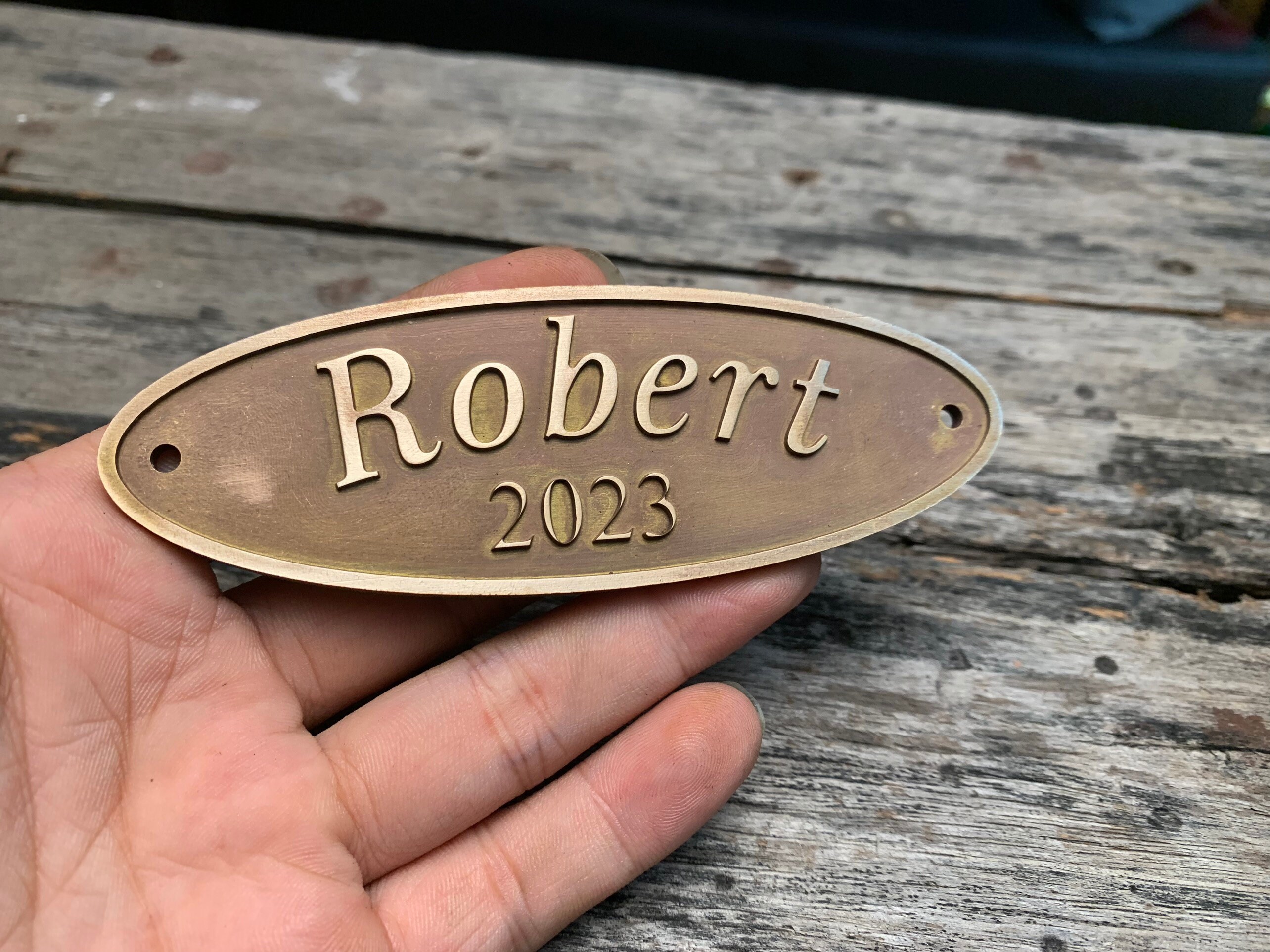 This solid-brass nameplate is perfect for personal nameplates, brand signs, door and exhibition signage, leather tags, machinery labels, artwork plates, and home or street addresses.
