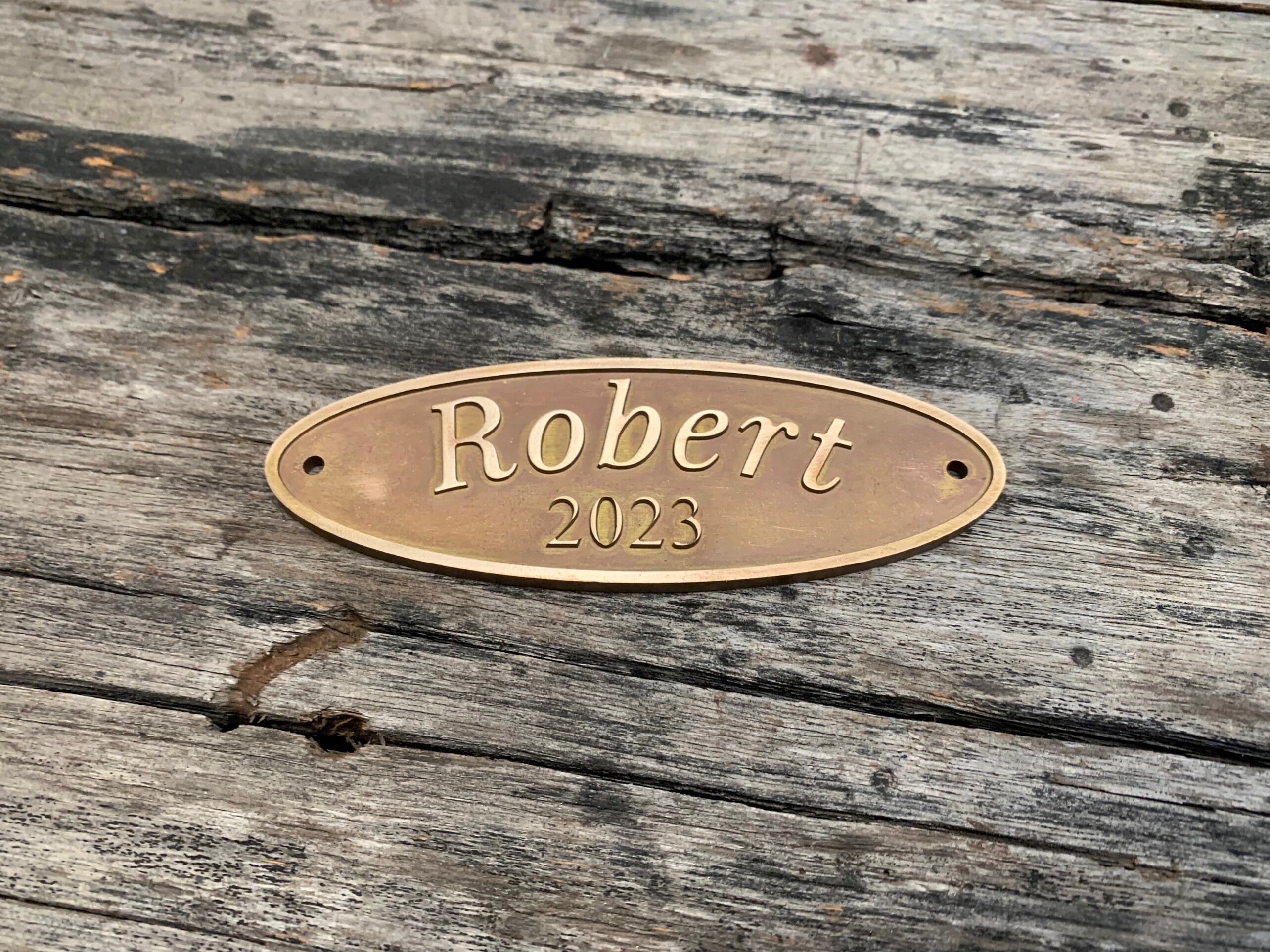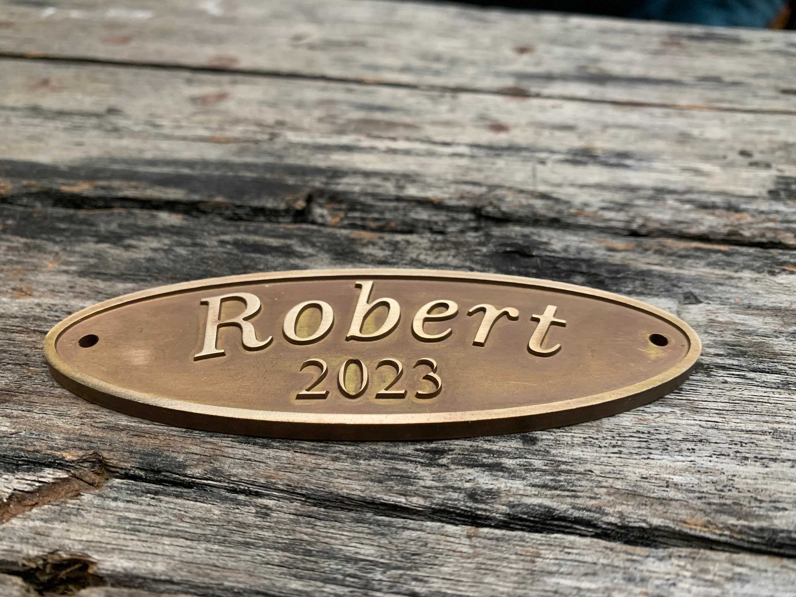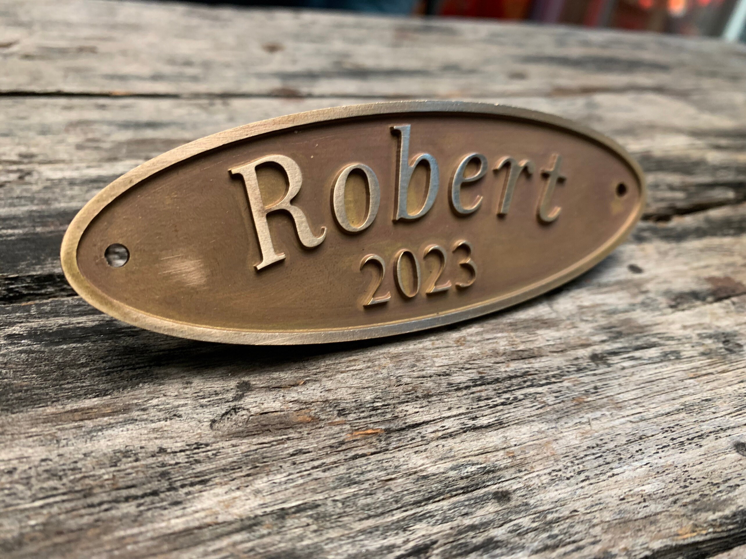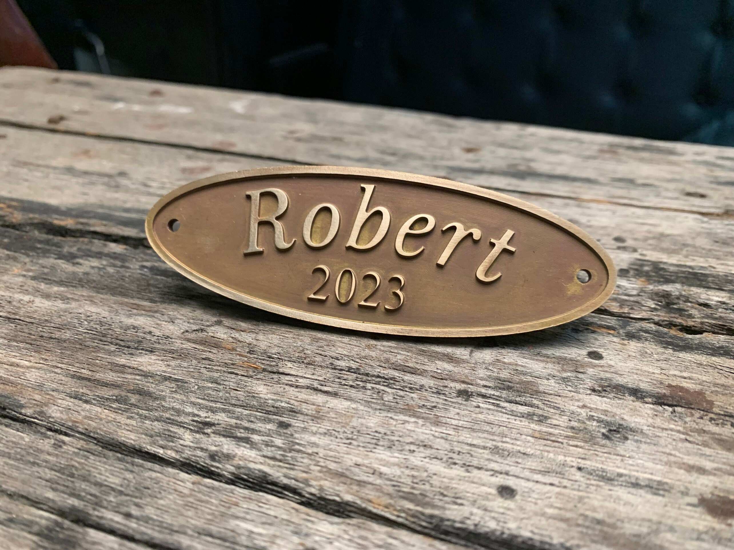 This solid-brass nameplate is perfect for personal nameplates, brand signs, door and exhibition signage, leather tags, machinery labels, artwork plates, and home or street addresses.