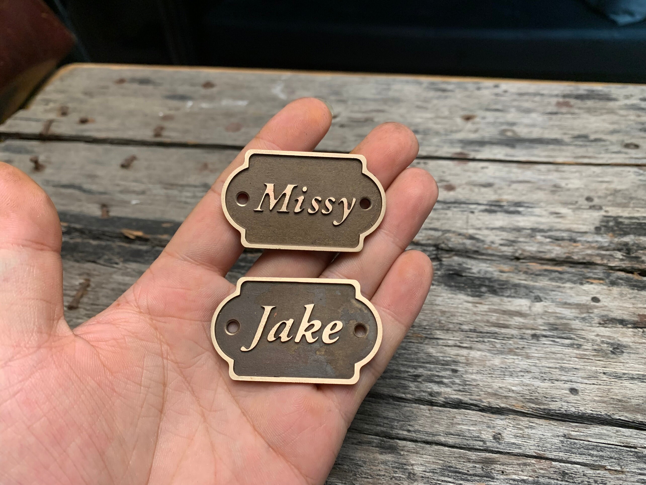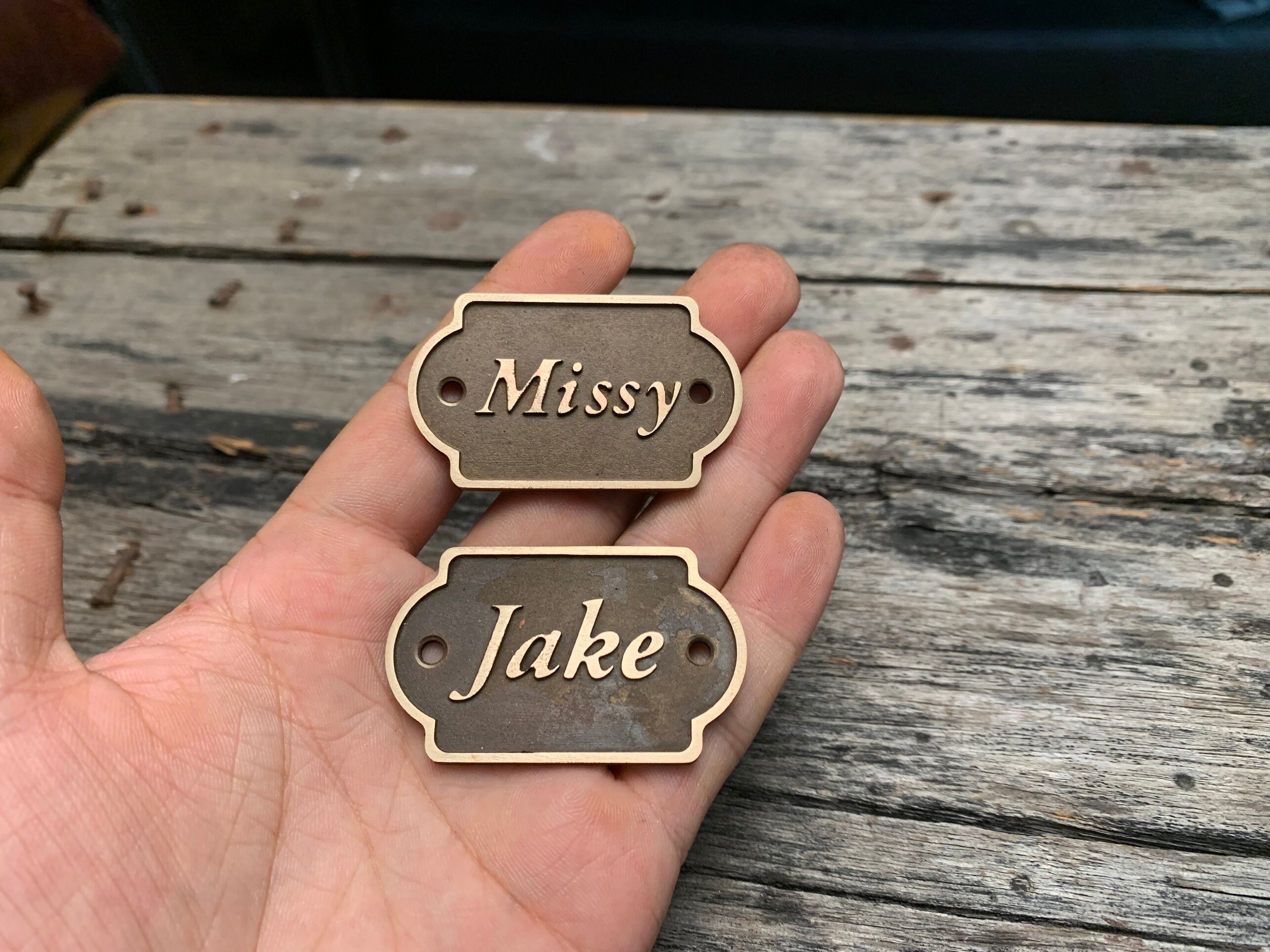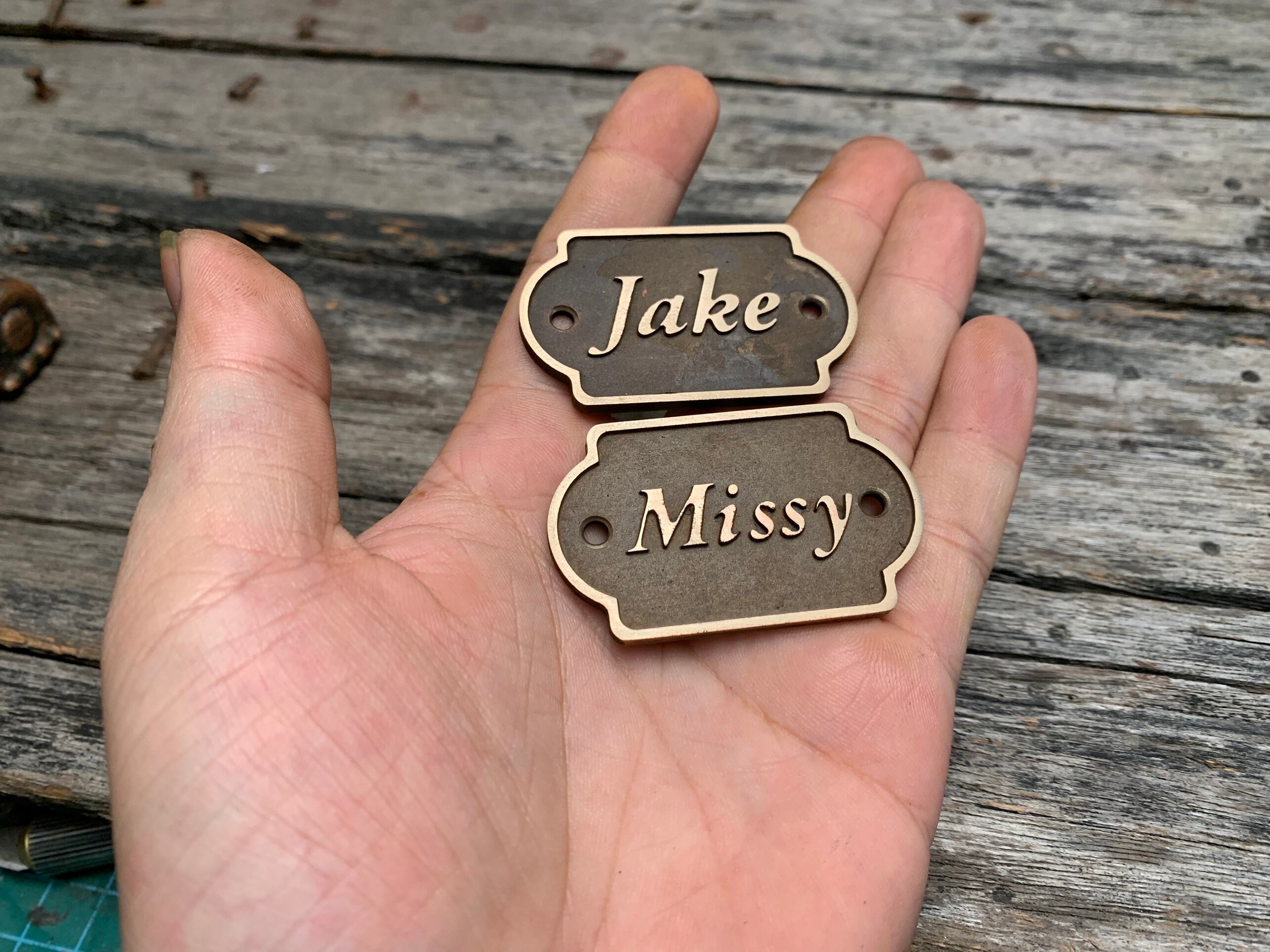 This solid-brass nameplate is perfect for personal nameplates, brand signs, door and exhibition signage, leather tags, machinery labels, artwork plates, and home or street addresses.