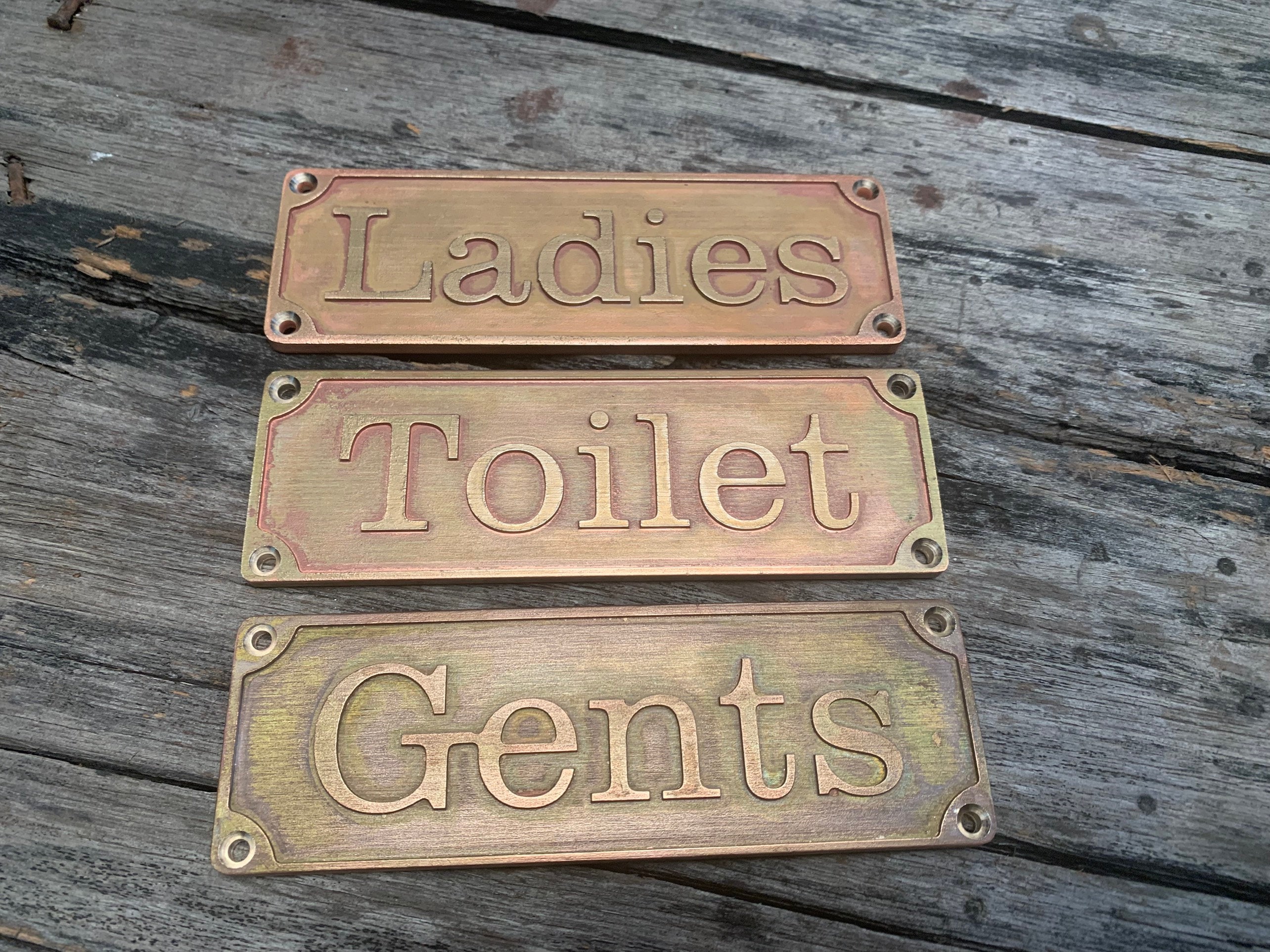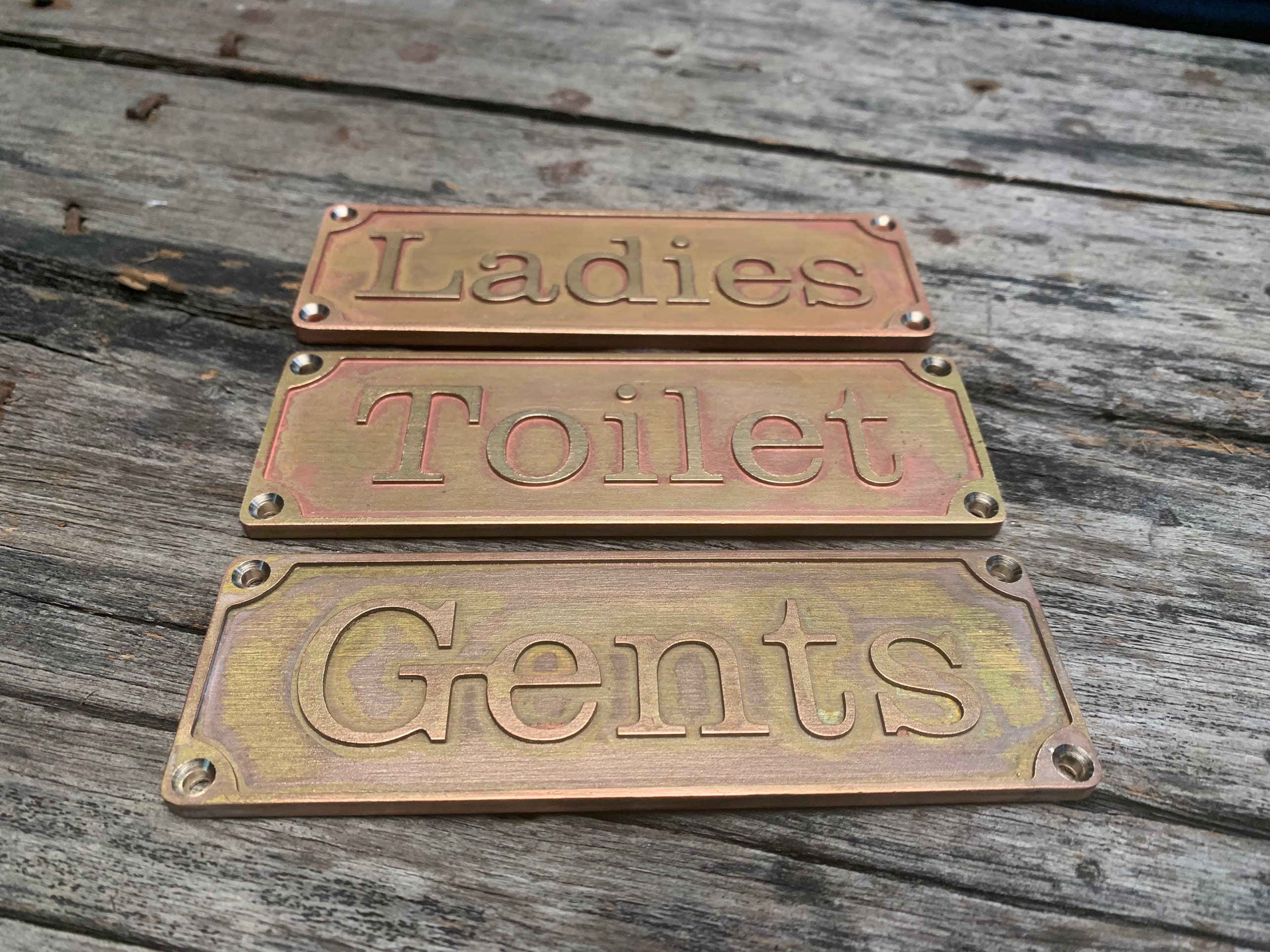 Premium solid brass restroom sign set – precision crafted for a timeless, high-end look. Includes Ladies, Gents, and Toilet signs, perfect for restaurants, cafés, hotels, offices, or home spaces.