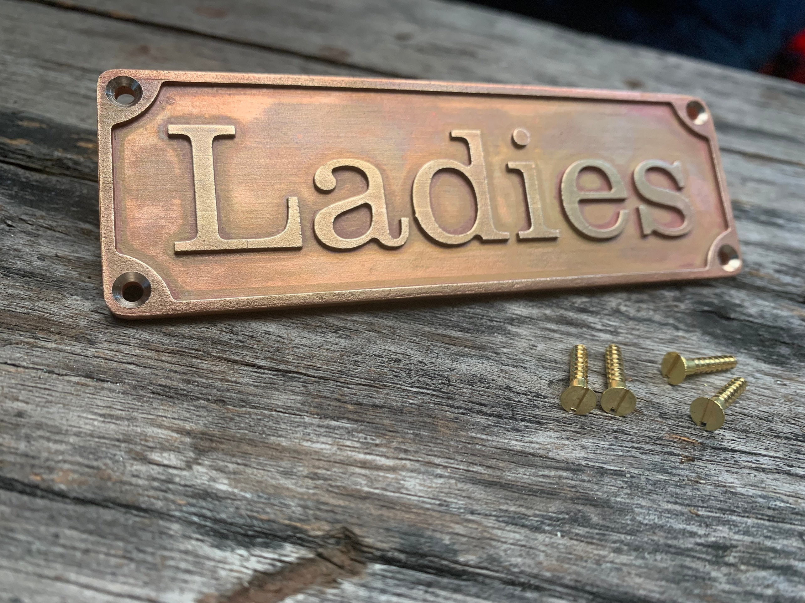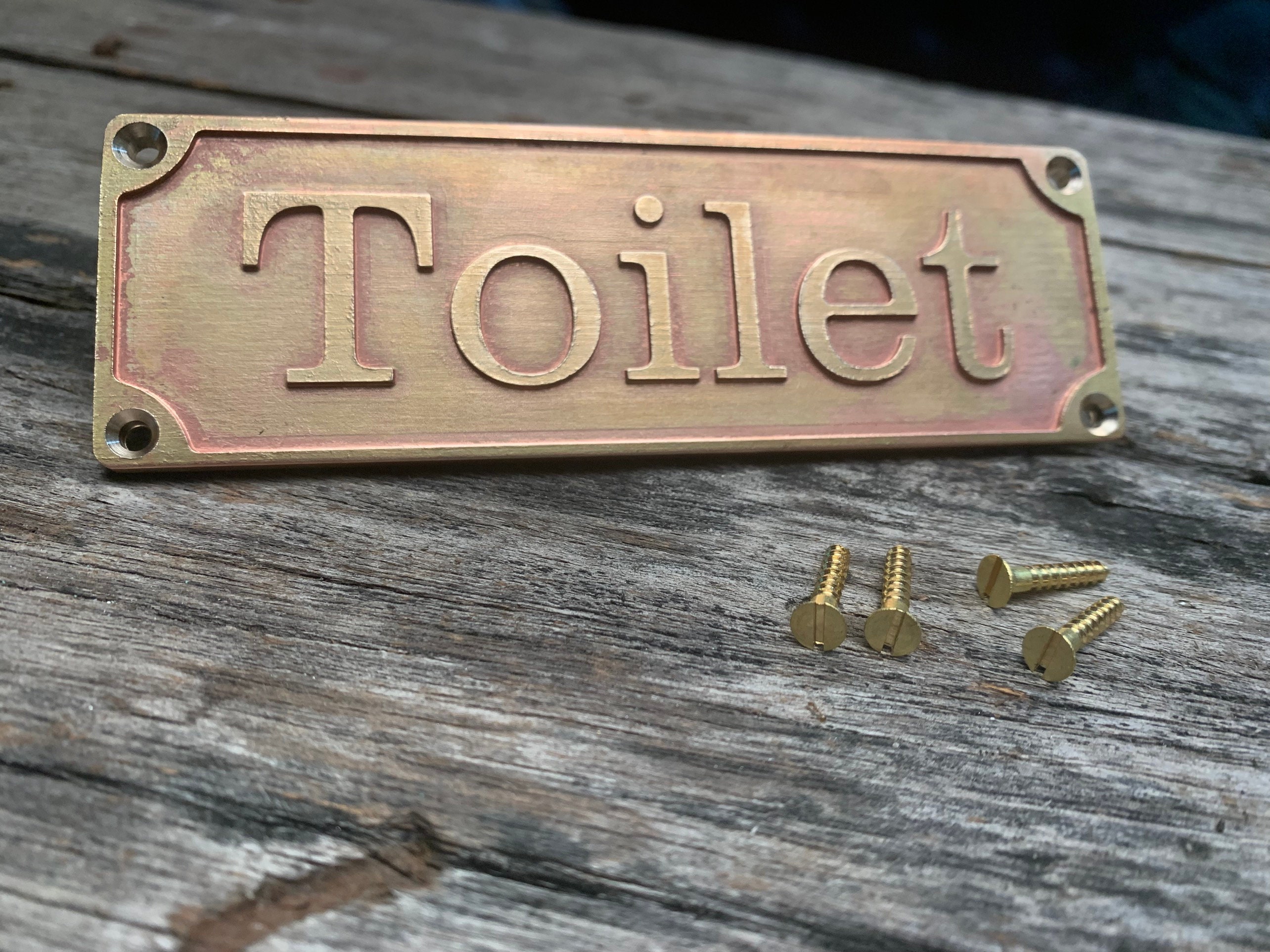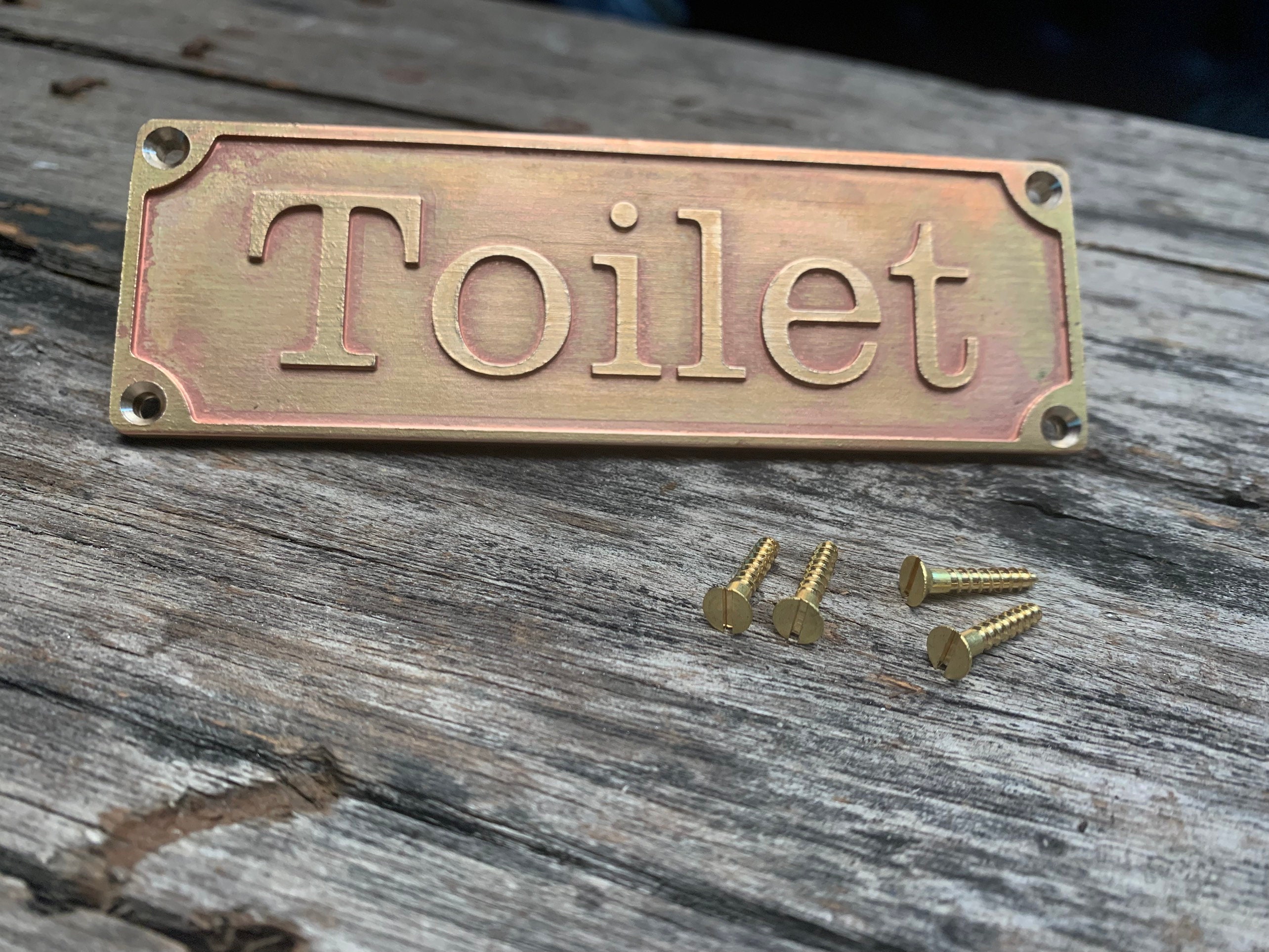 Each order includes a curated font selection and matching brass screws for easy installation on doors or walls.