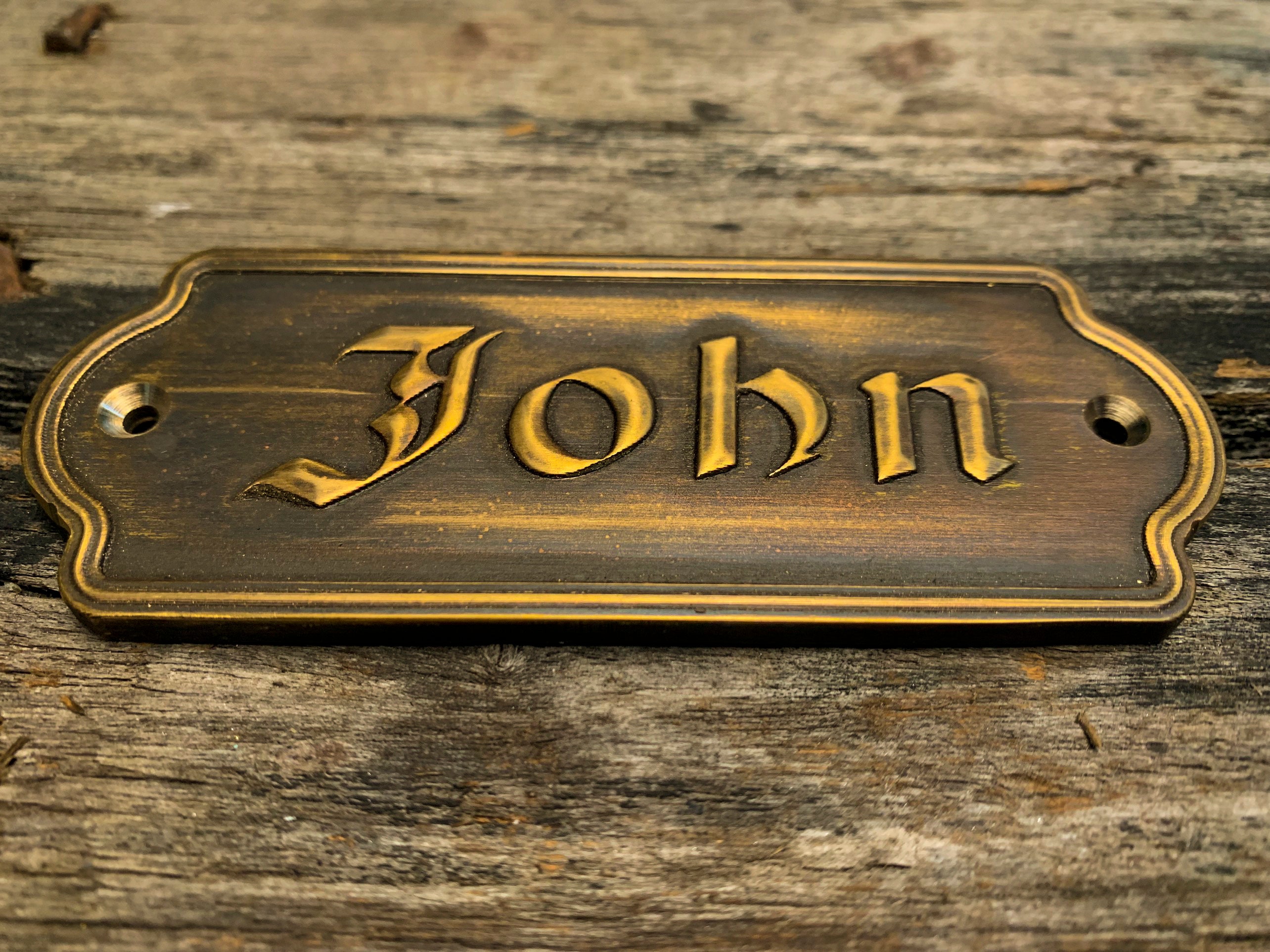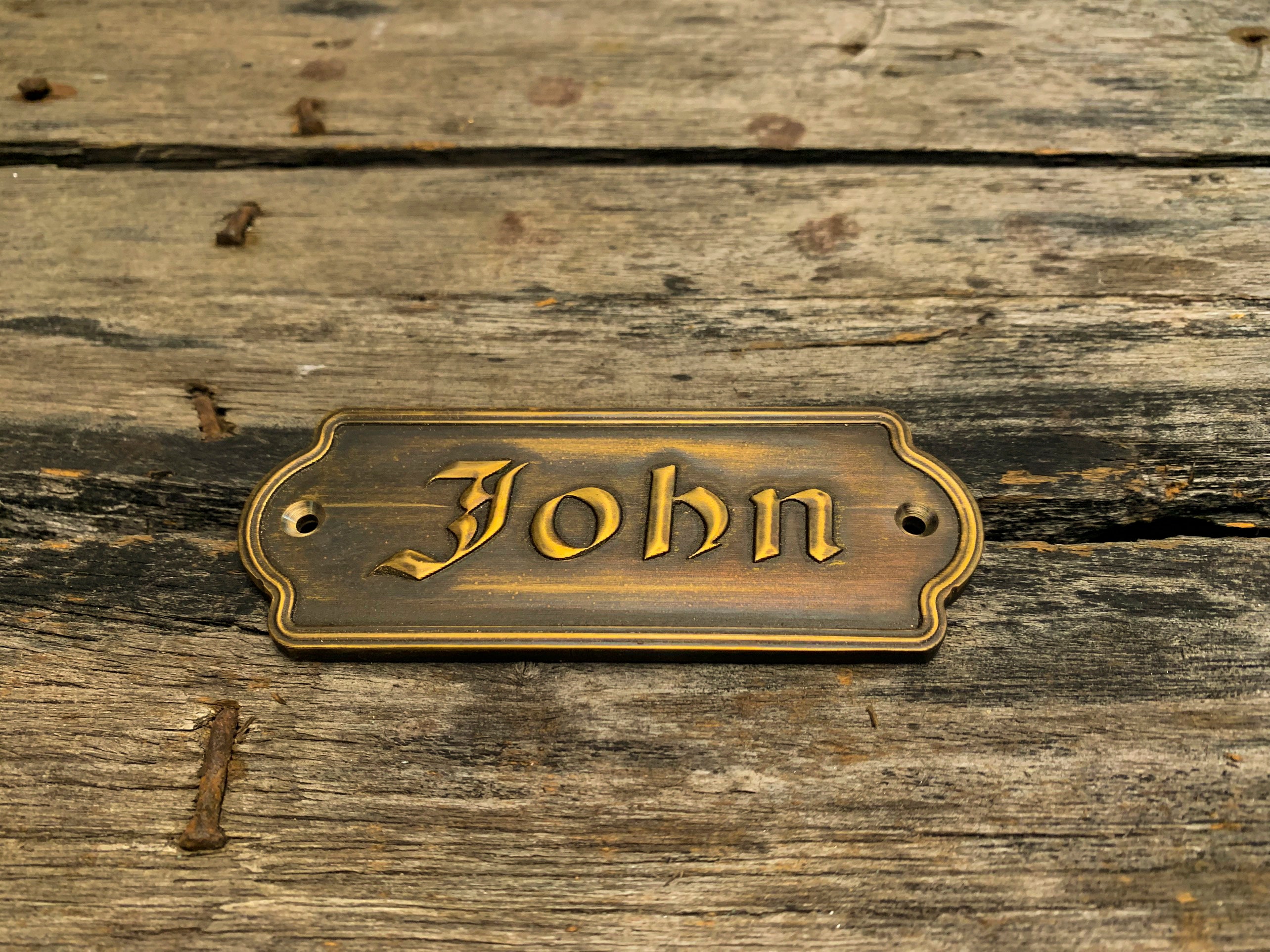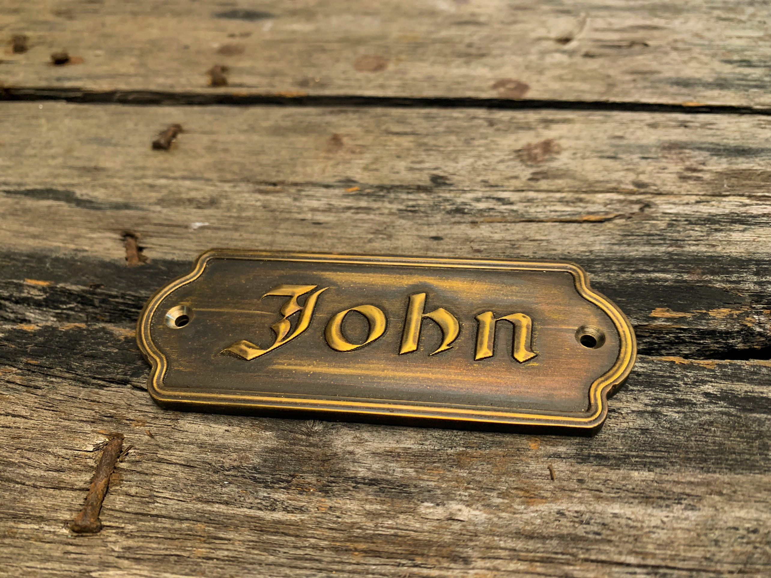 This solid-brass nameplate is perfect for personal nameplates, brand signs, door and exhibition signage, leather tags, machinery labels, artwork plates, and home or street addresses.