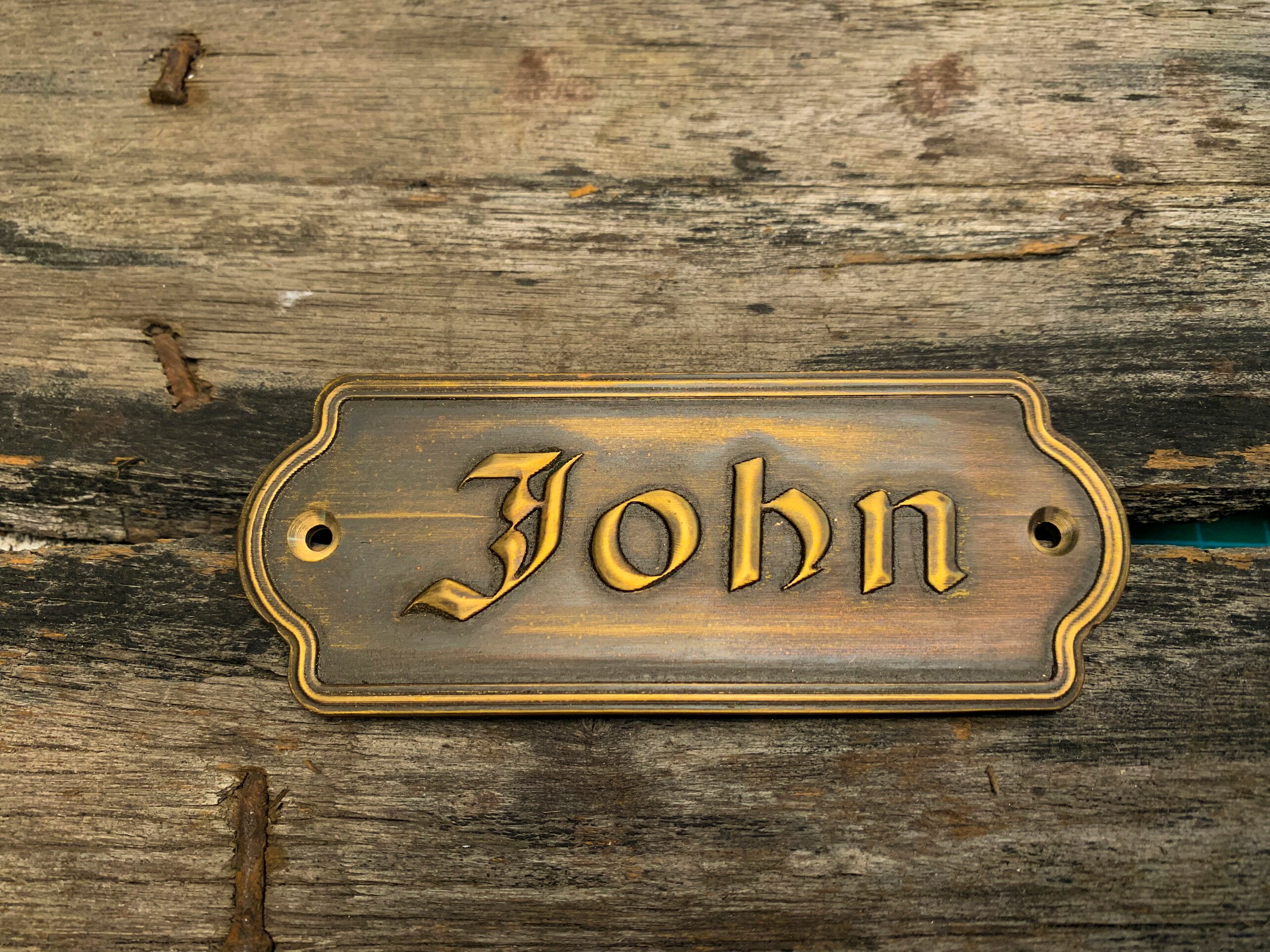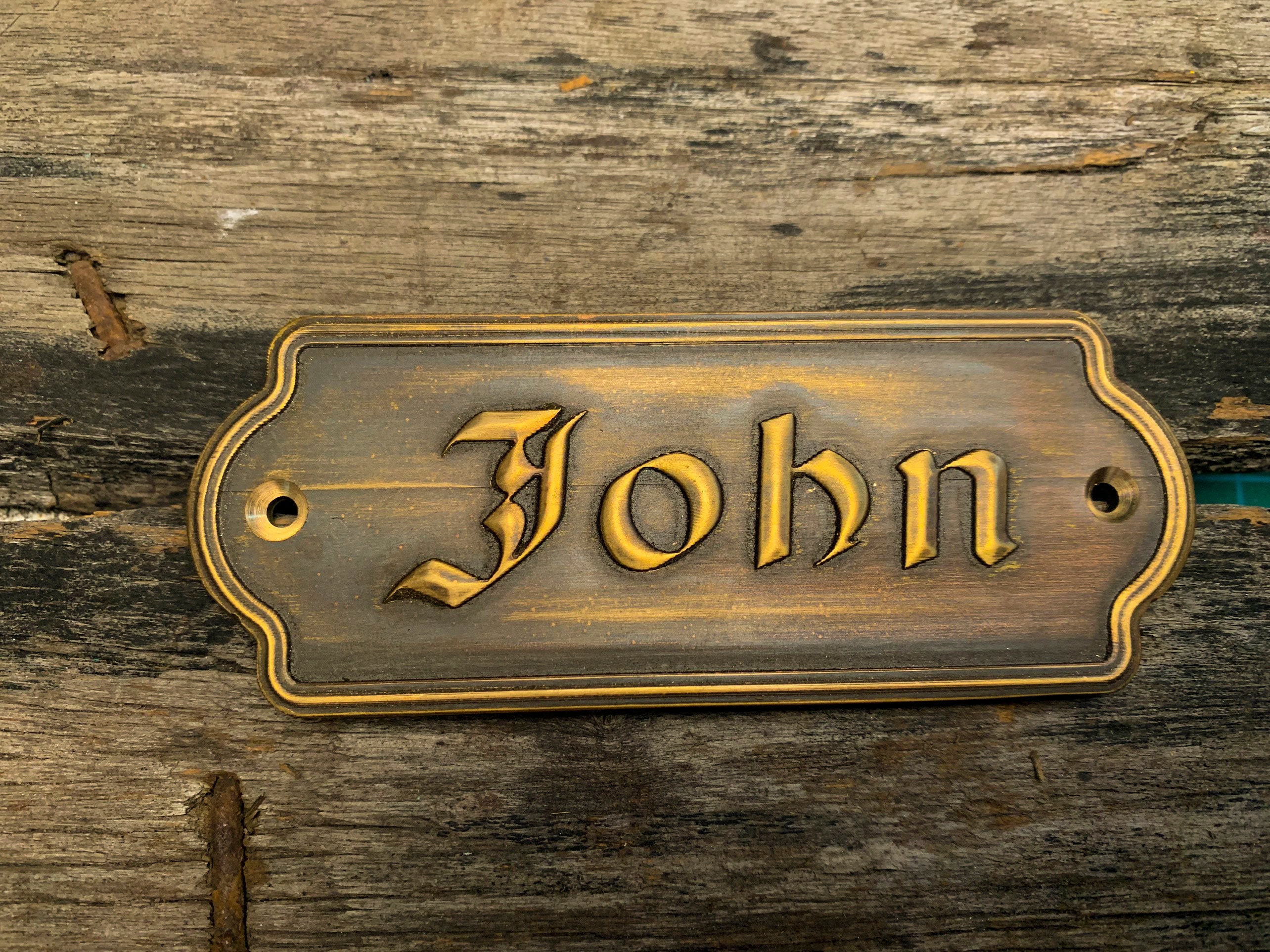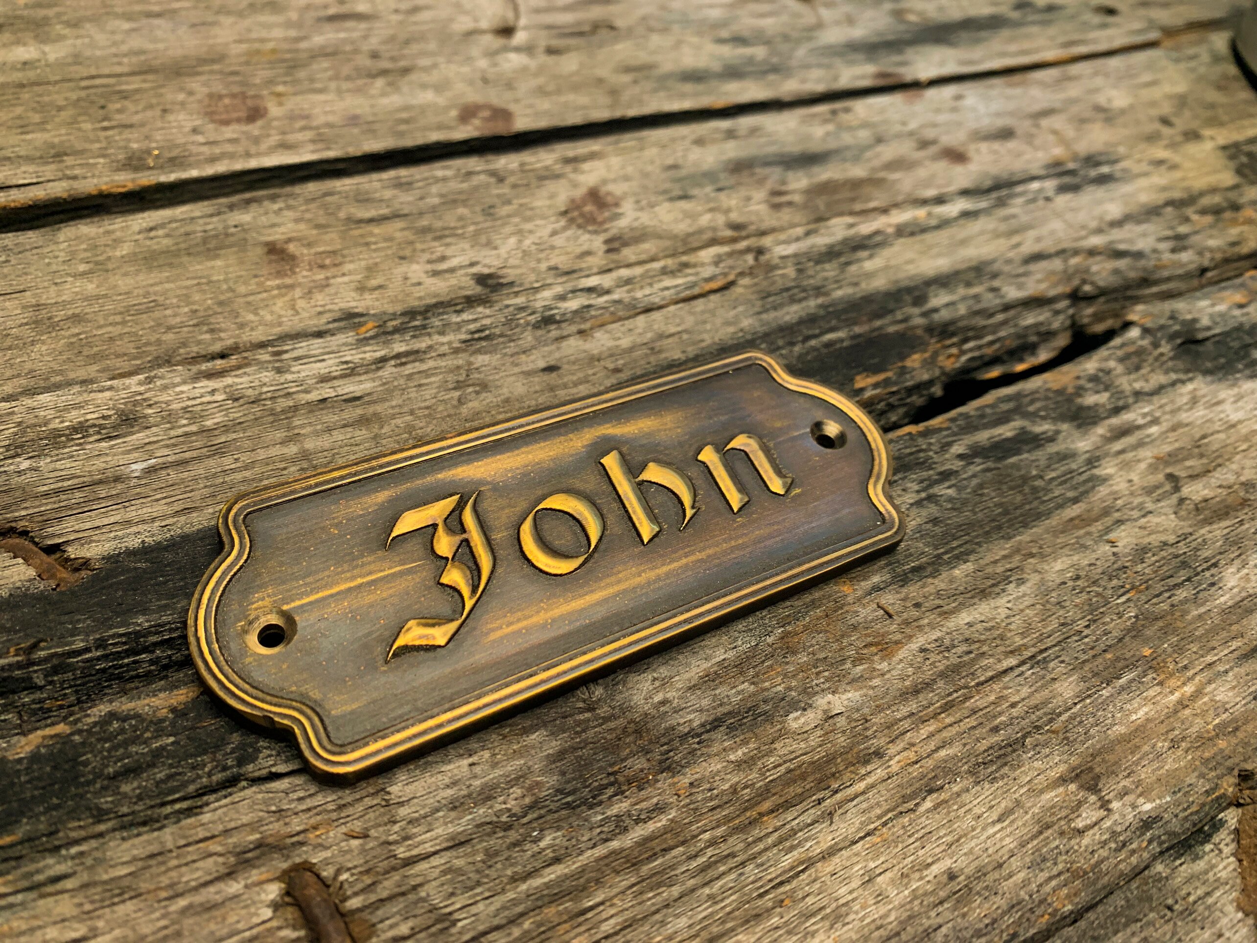 This solid-brass nameplate is perfect for personal nameplates, brand signs, door and exhibition signage, leather tags, machinery labels, artwork plates, and home or street addresses.