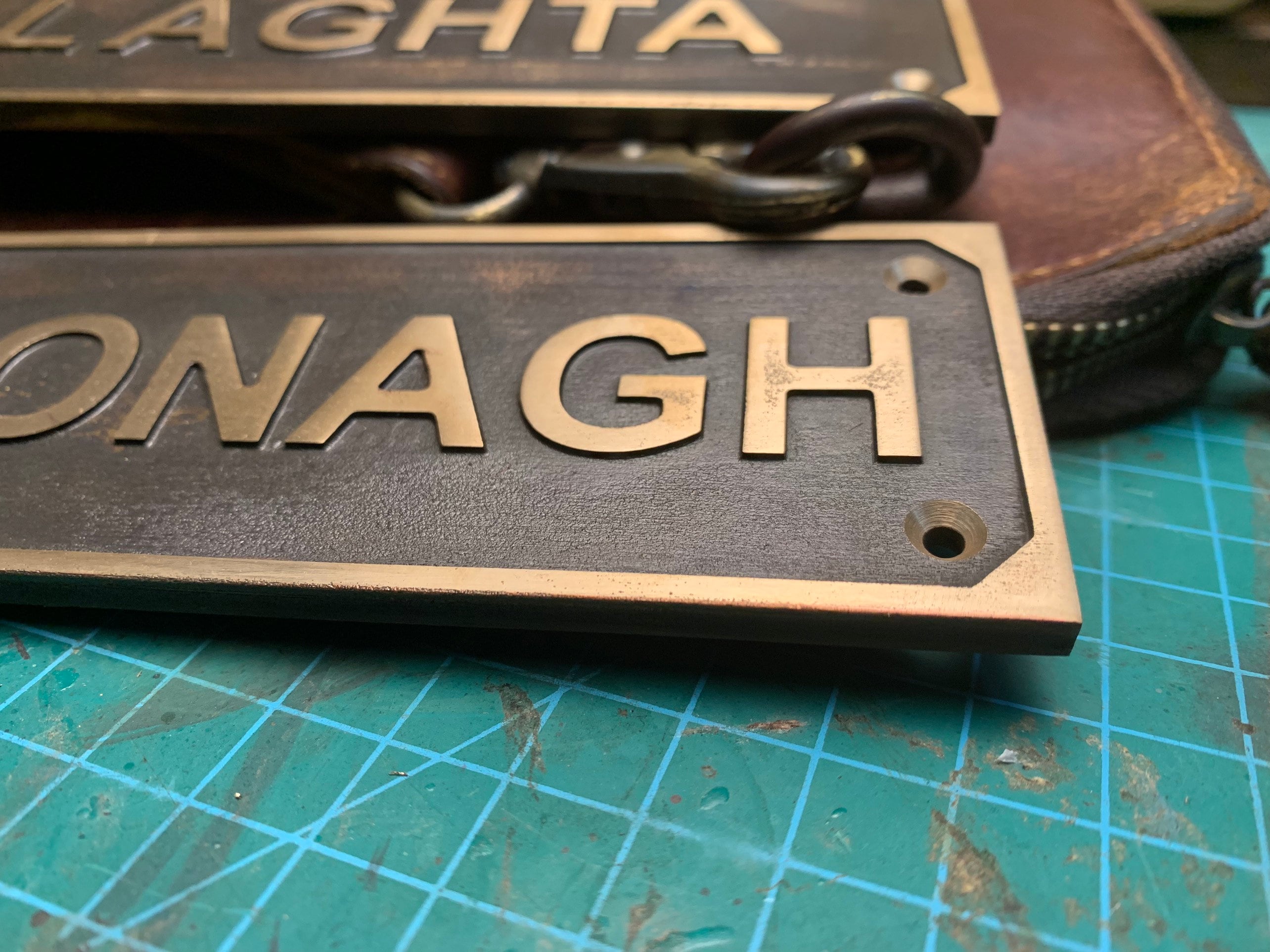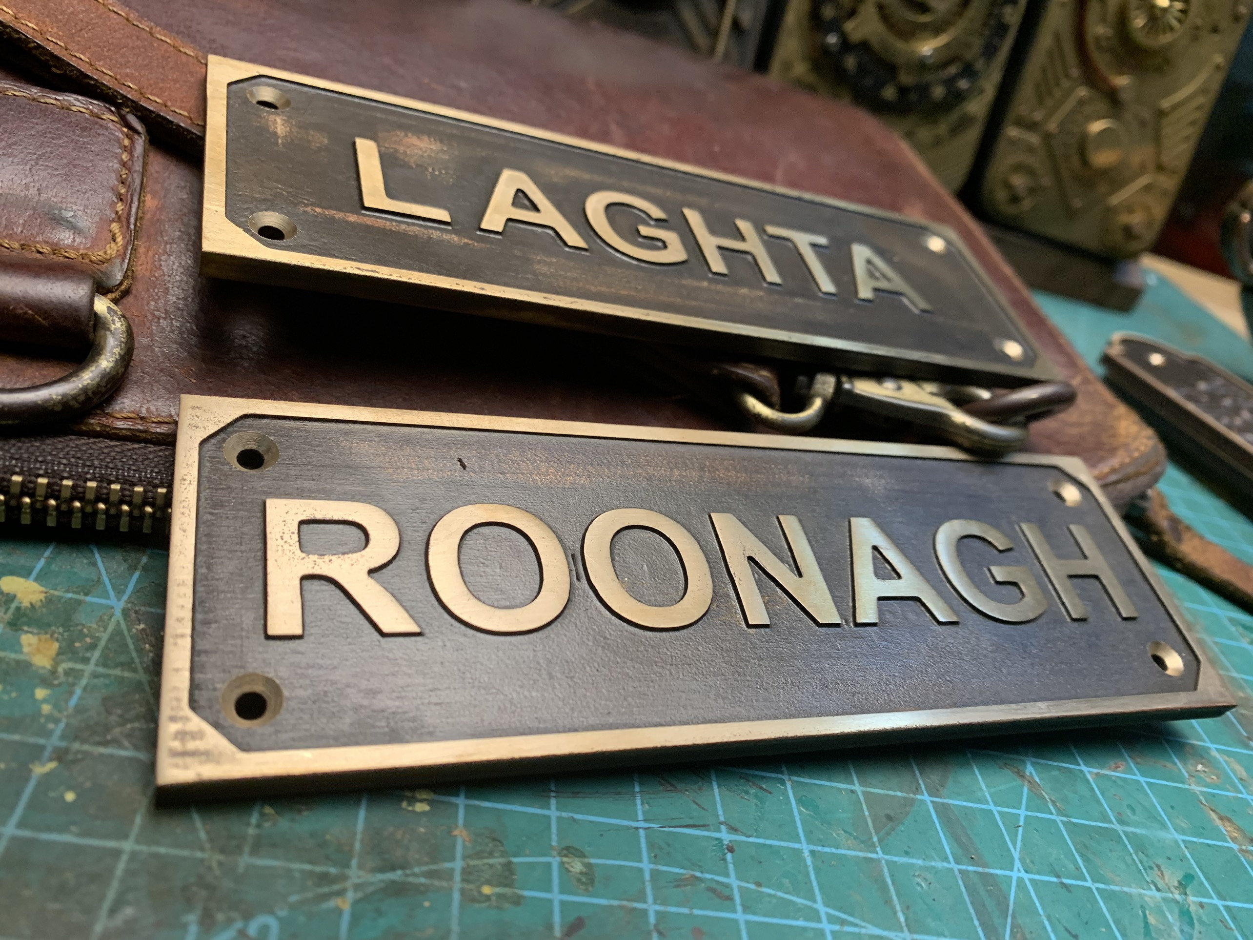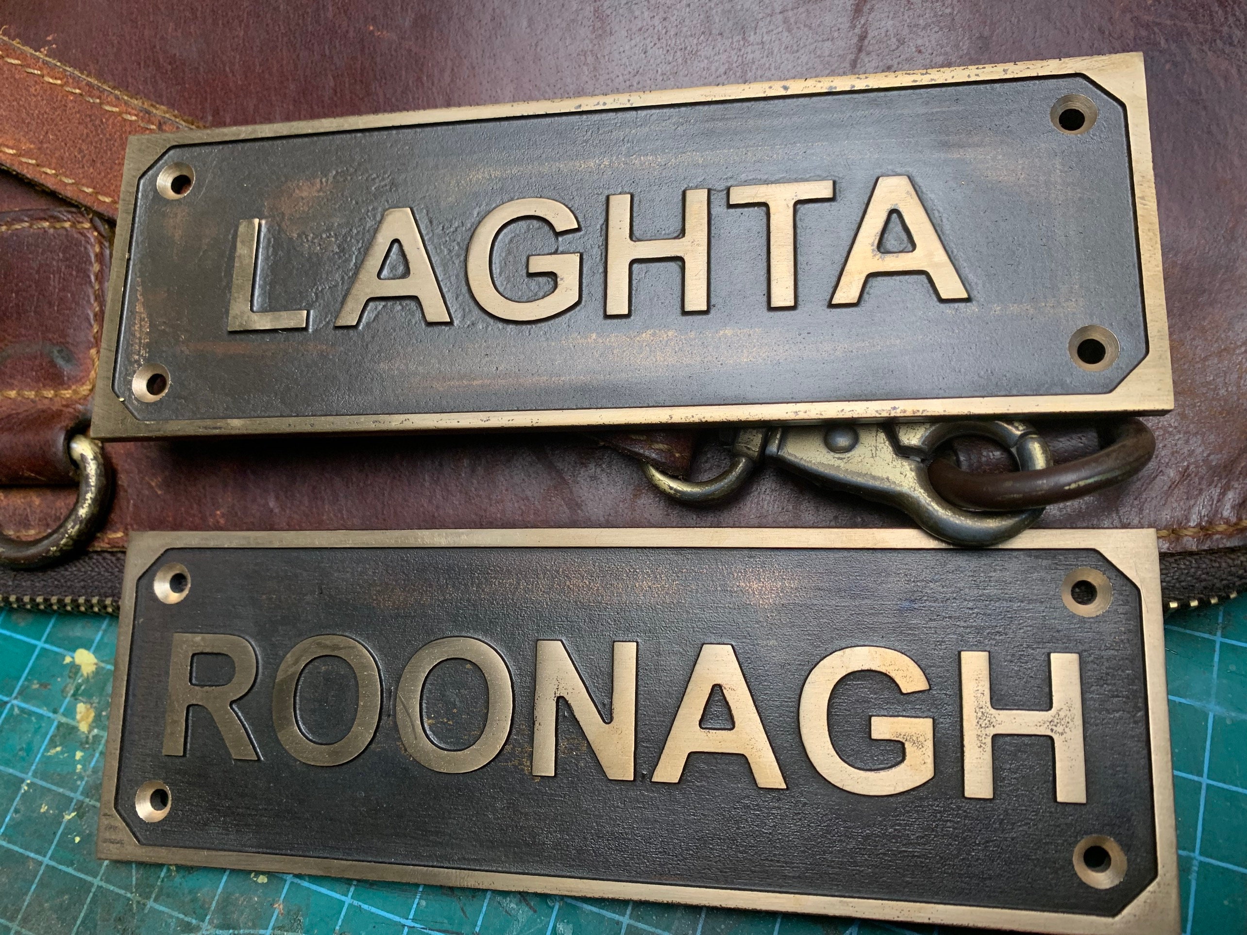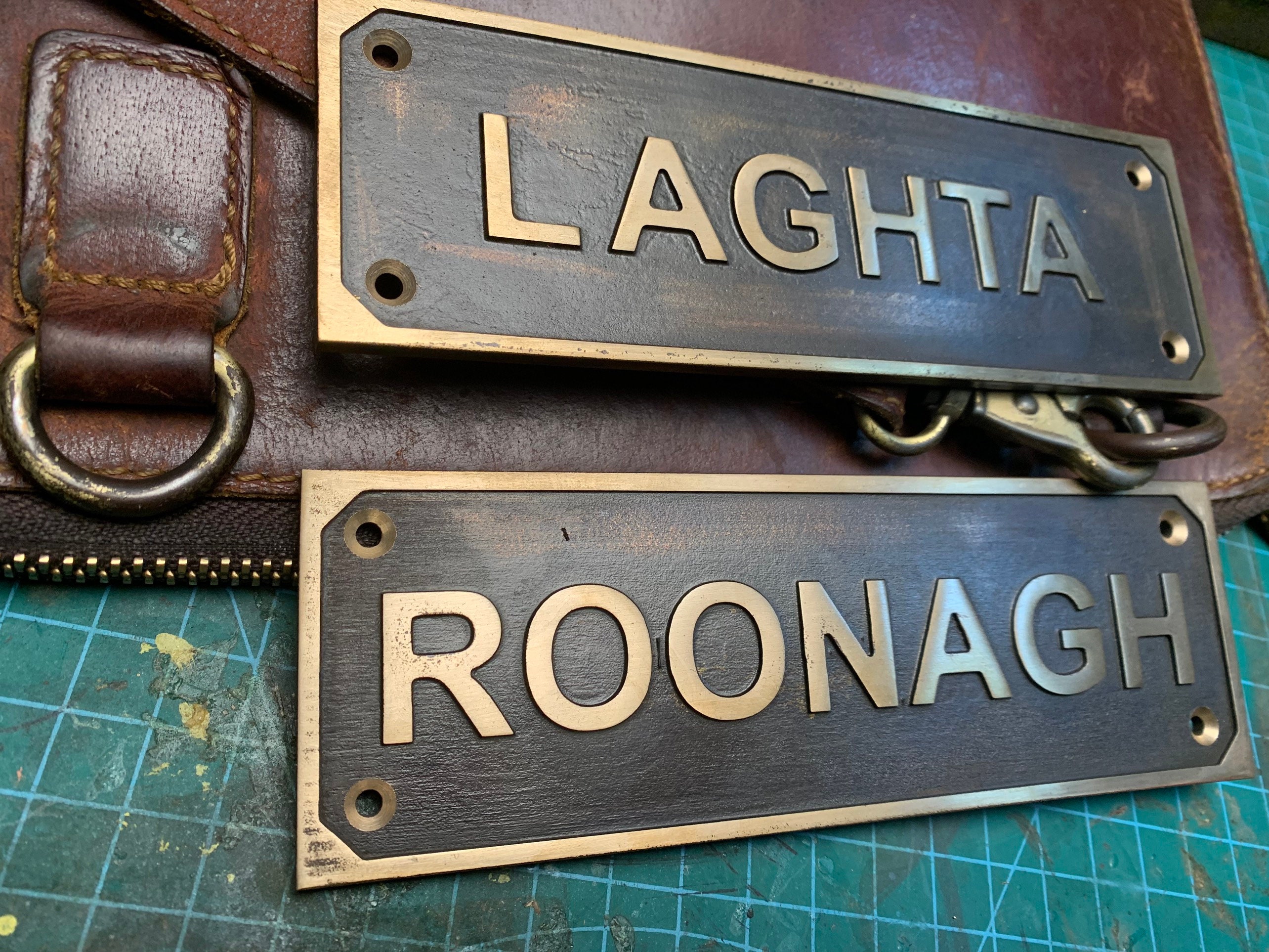 Each order includes a curated font selection and matching brass screws for easy installation on doors or walls.
