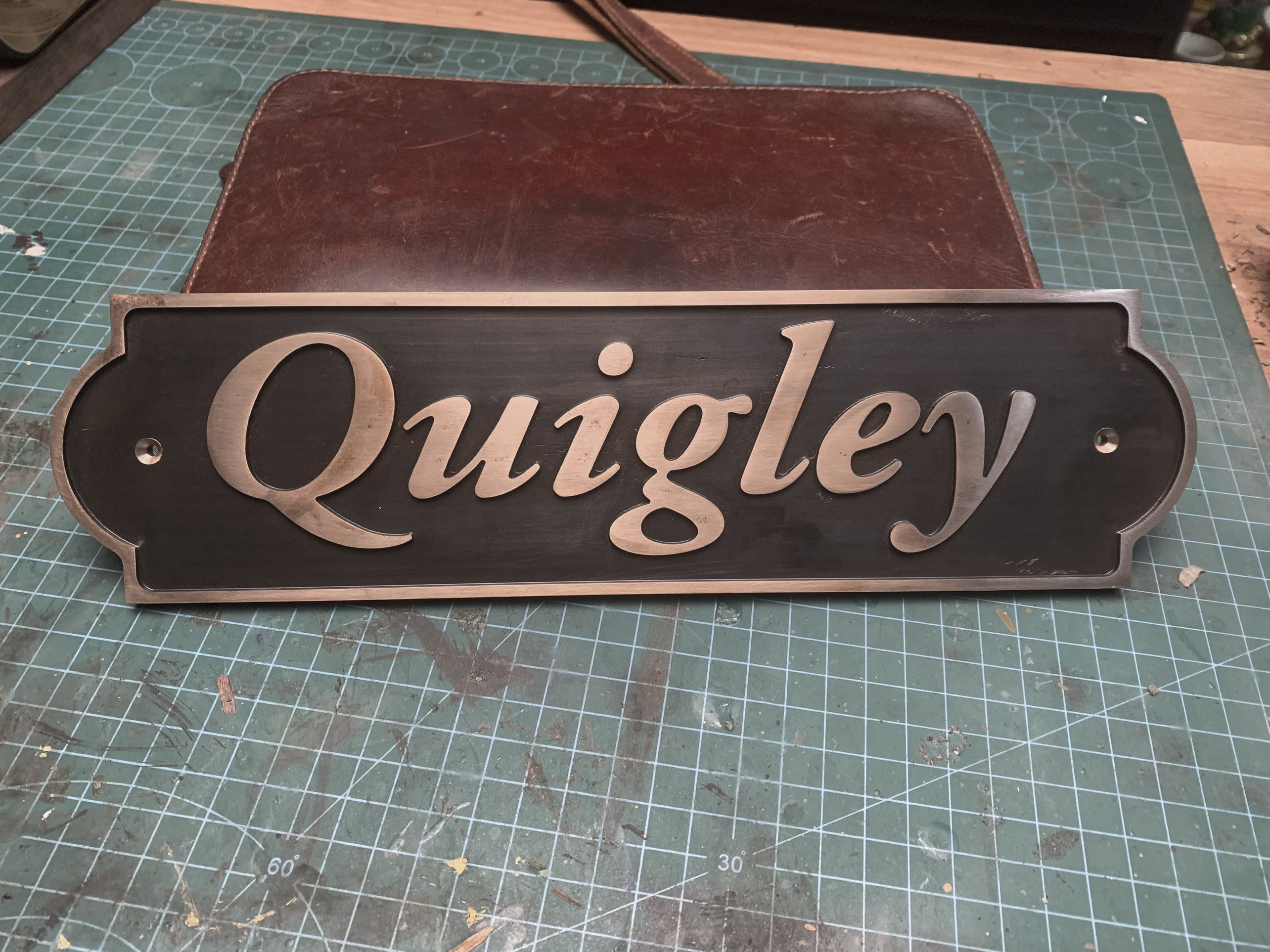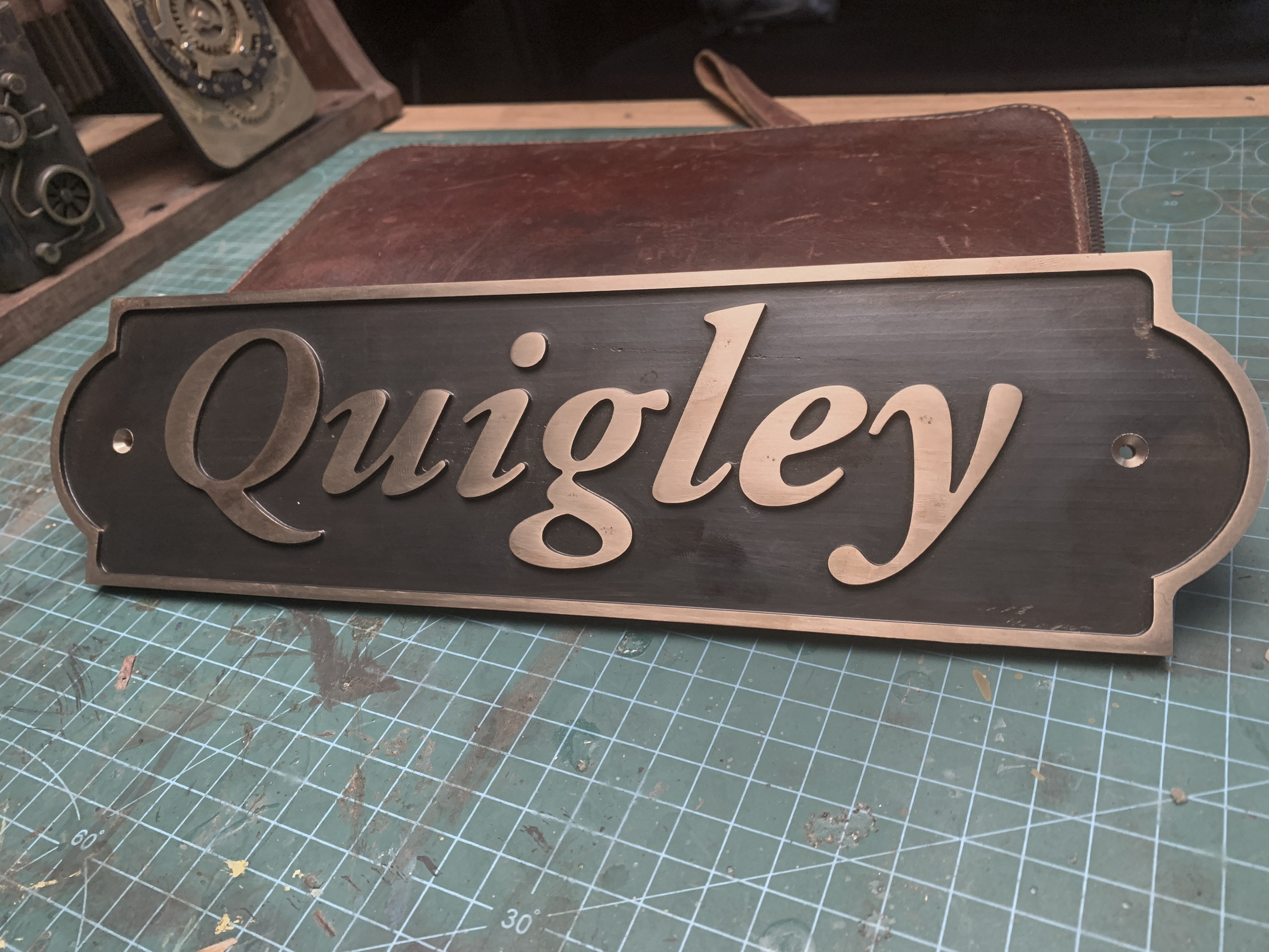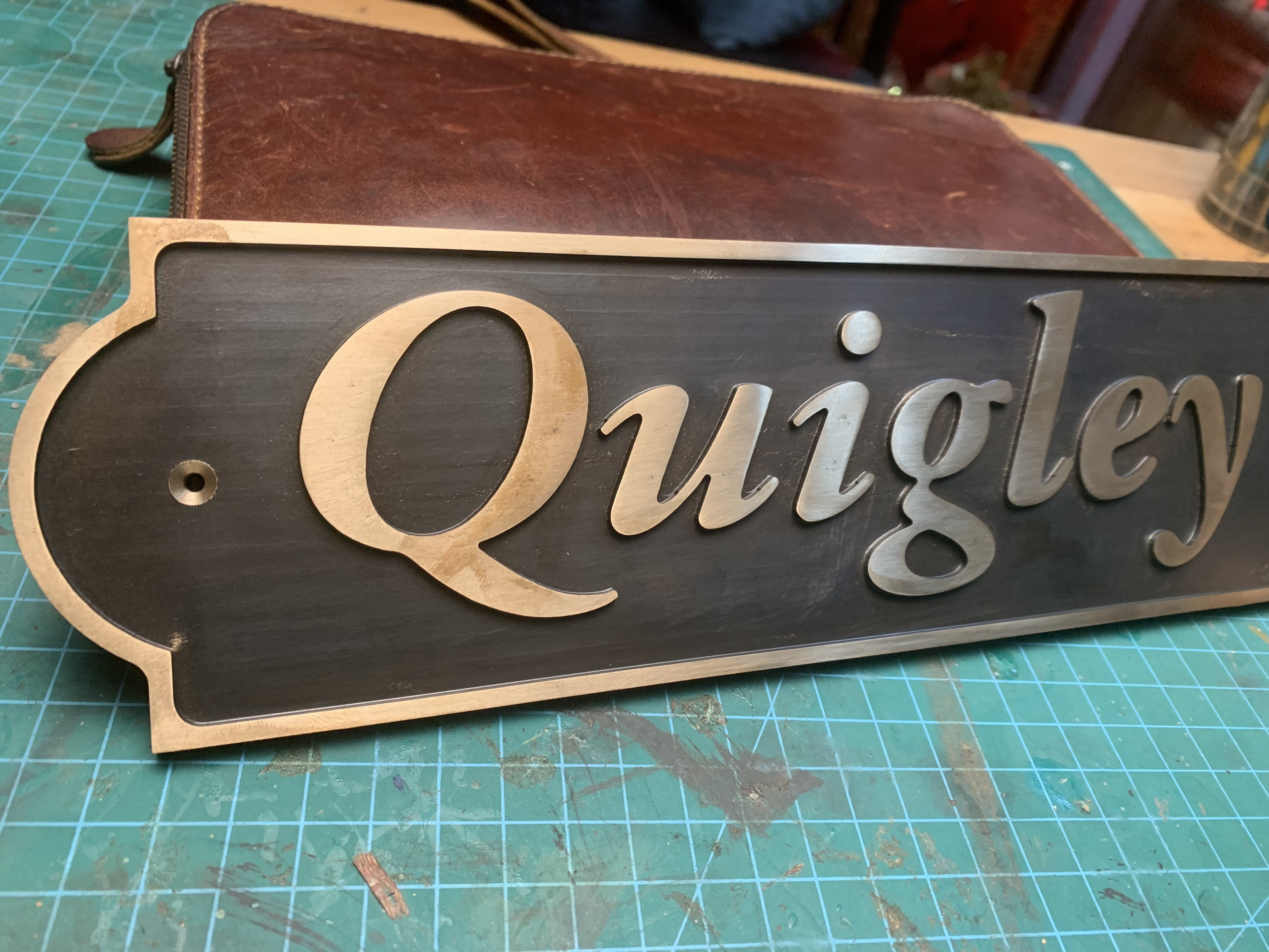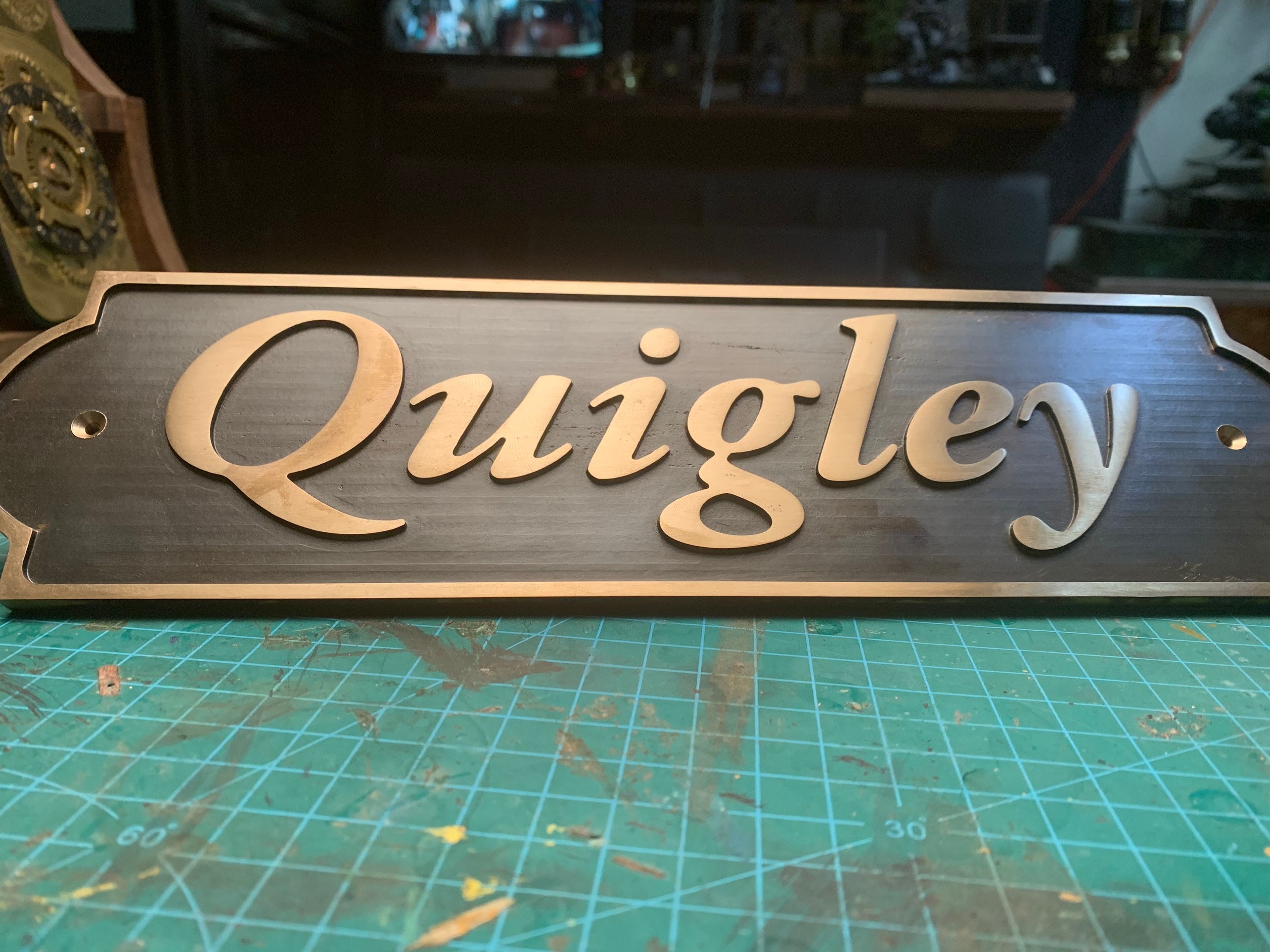 This solid-brass nameplate is perfect for personal nameplates, brand signs, door and exhibition signage, leather tags, machinery labels, artwork plates, and home or street addresses.