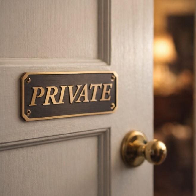 Premium solid brass “Private” sign – precision crafted for a clean, professional, and timeless look. Ideal for offices, home workspaces, meeting rooms, studios, or any space that requires privacy and clear identification.