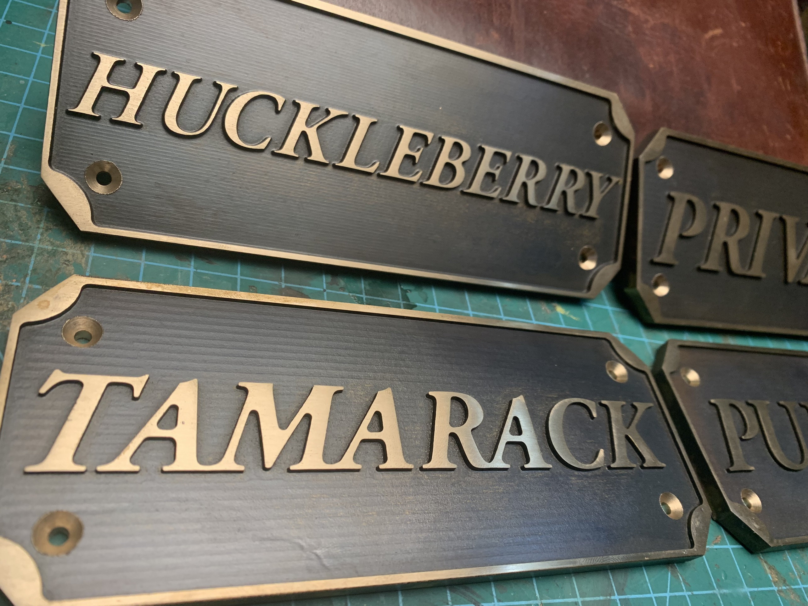 Each order includes a curated font selection and matching brass screws for easy and secure door installation.