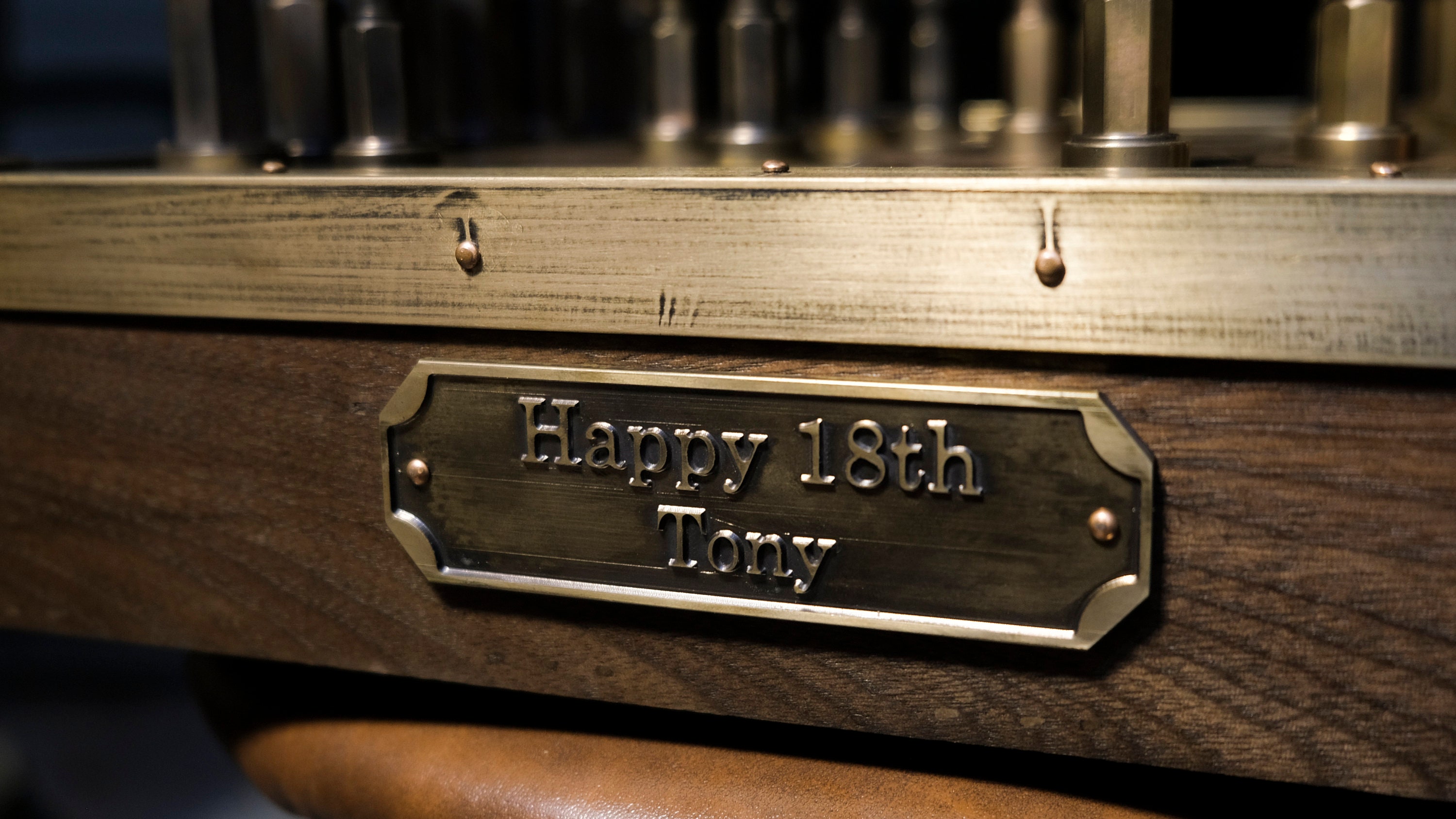 --> The slant of the chessboard is customized with a brass board, which can be engraved with a custom name. We limit 30 characters.