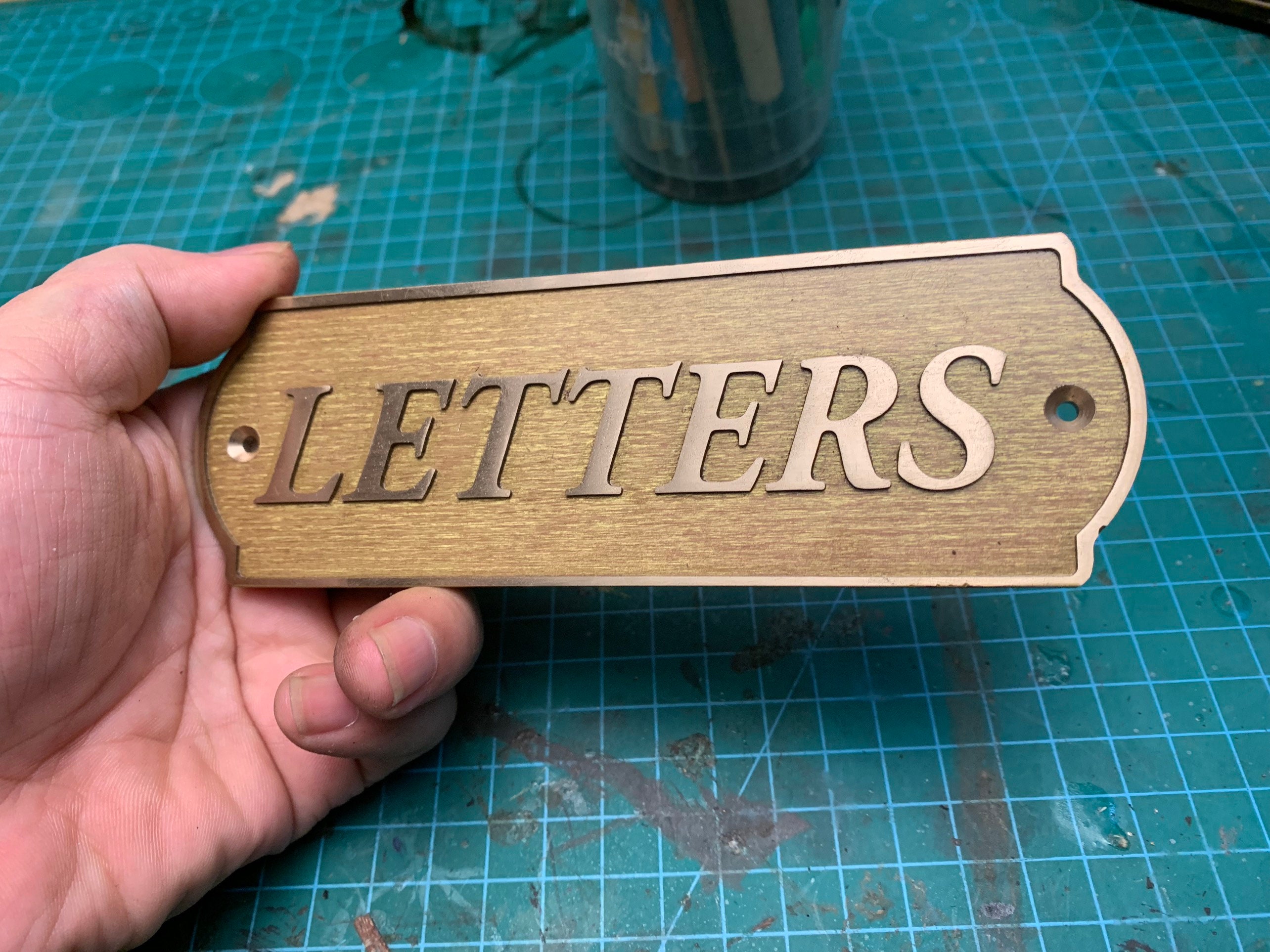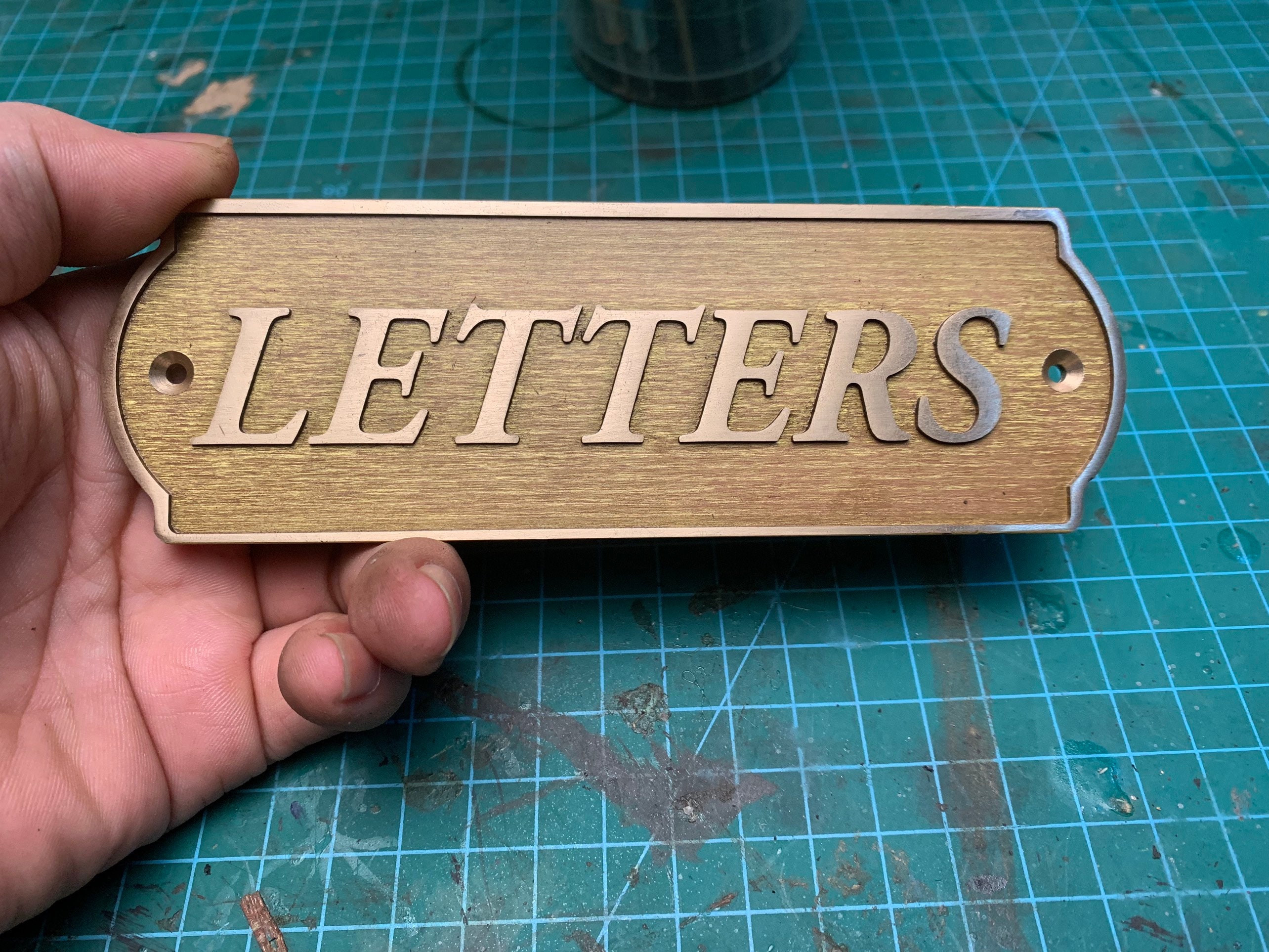 This solid-brass nameplate is perfect for personal nameplates, brand signs, door and exhibition signage, leather tags, machinery labels, artwork plates, and home or street addresses.