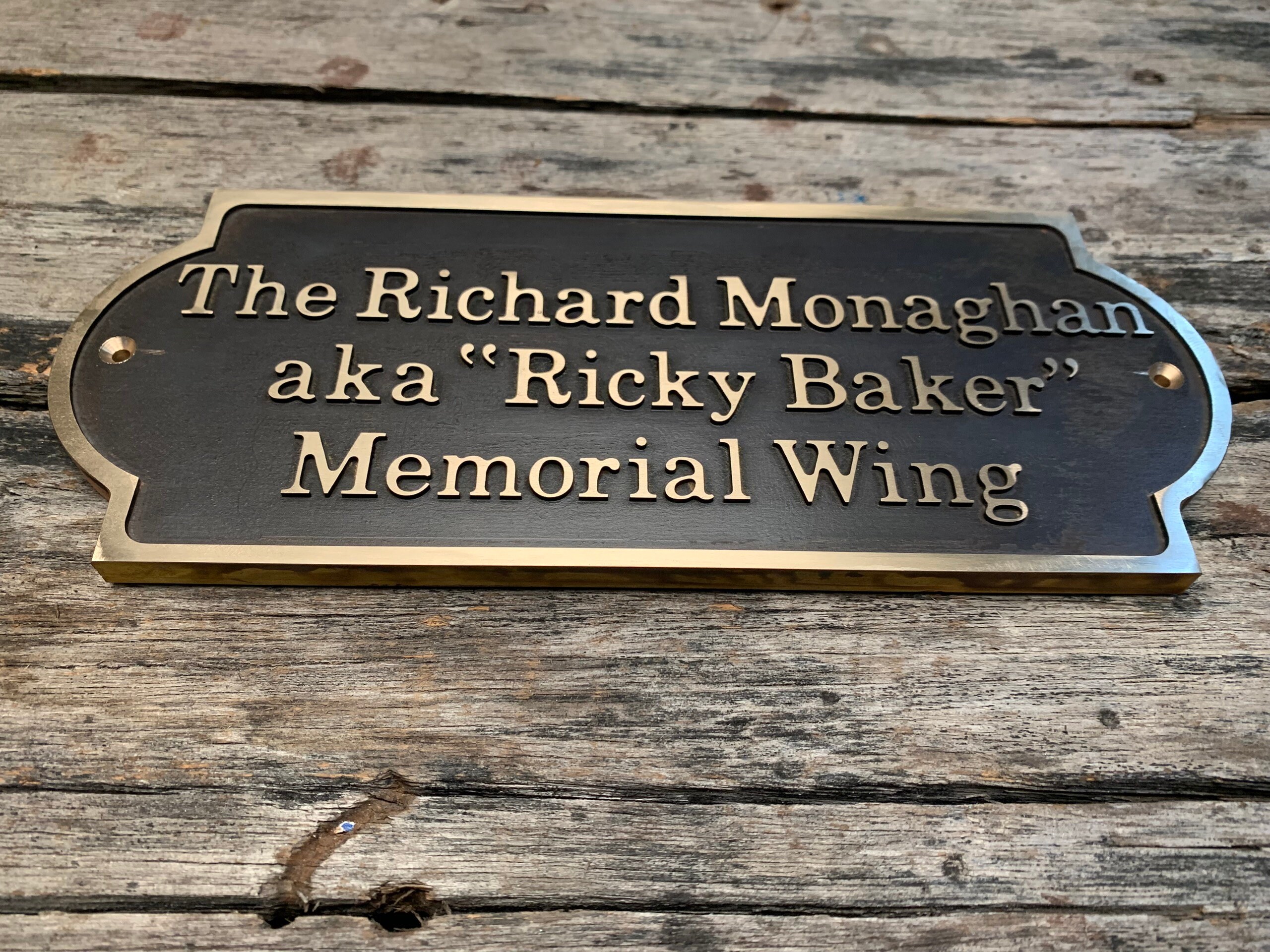 A curated font list is provided, and each mounting hole includes a matching brass screw.