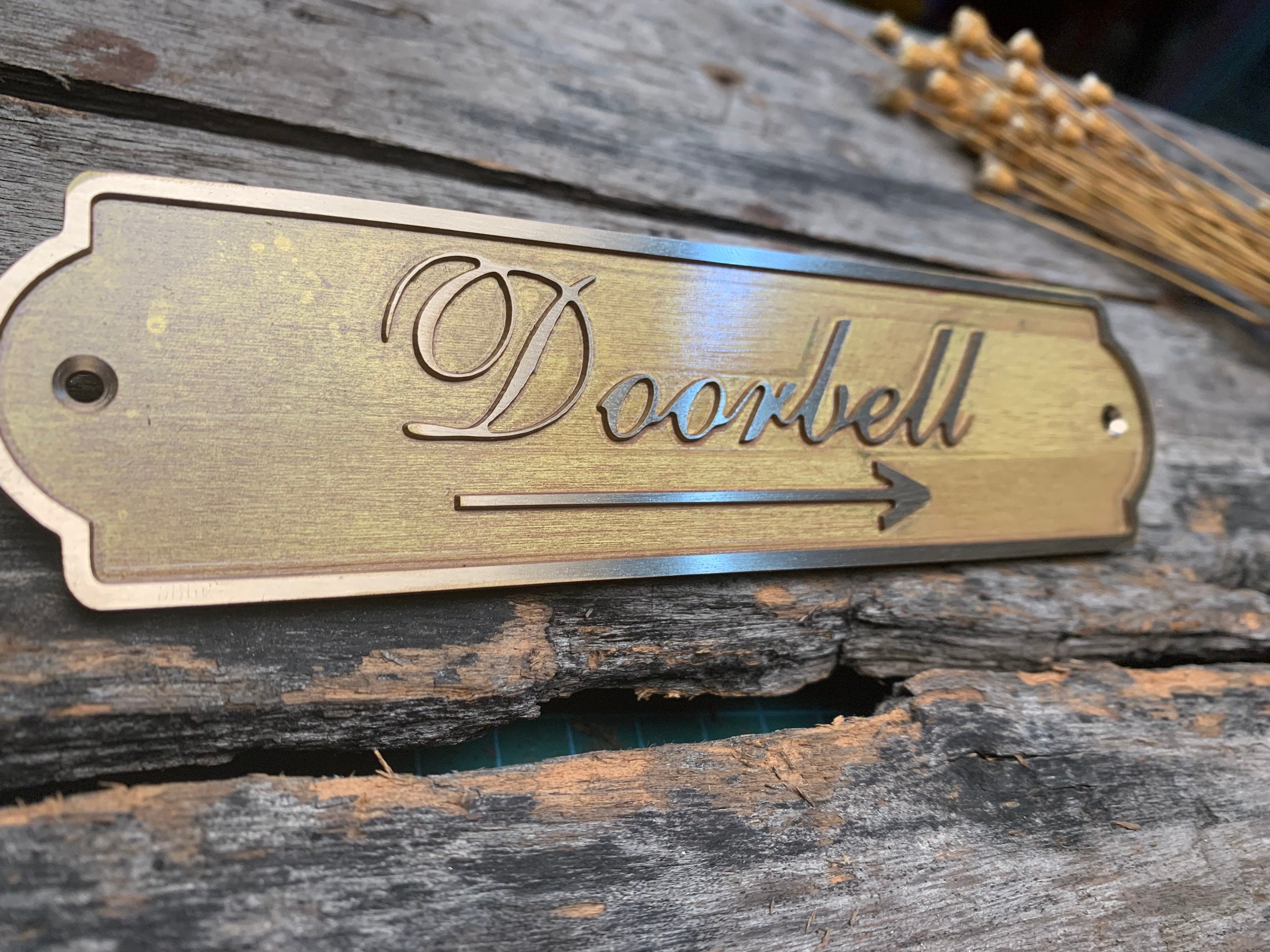 This solid-brass nameplate is perfect for personal nameplates, brand signs, door and exhibition signage, leather tags, machinery labels, artwork plates, and home or street addresses.