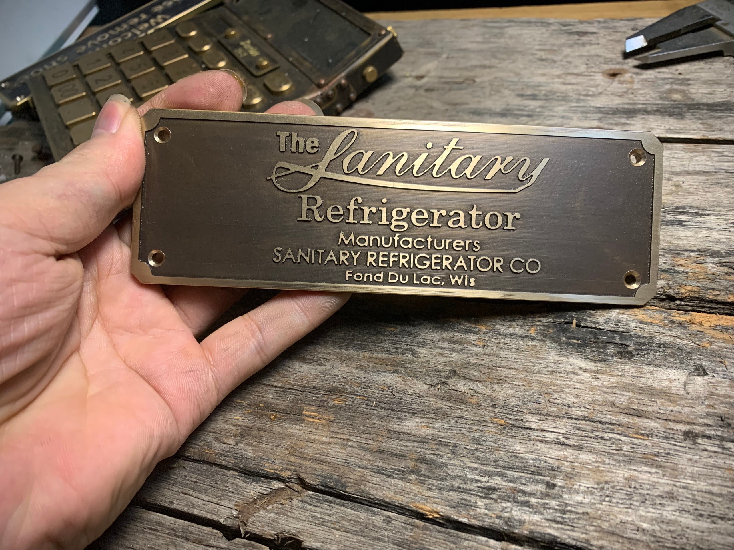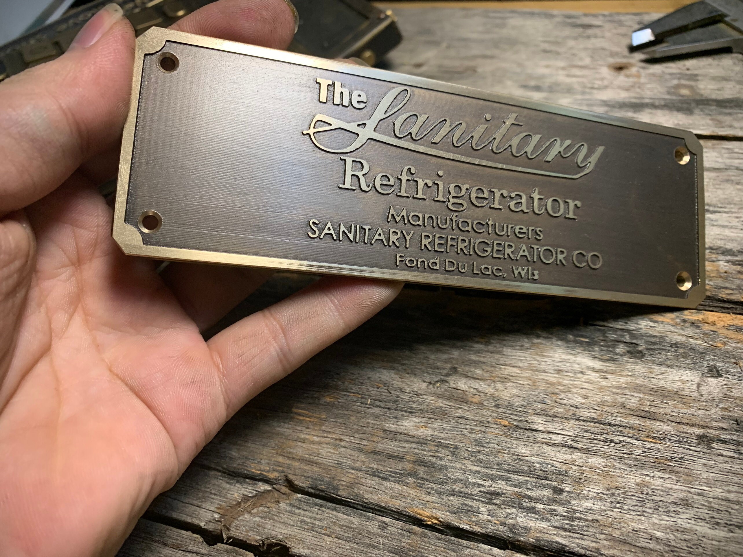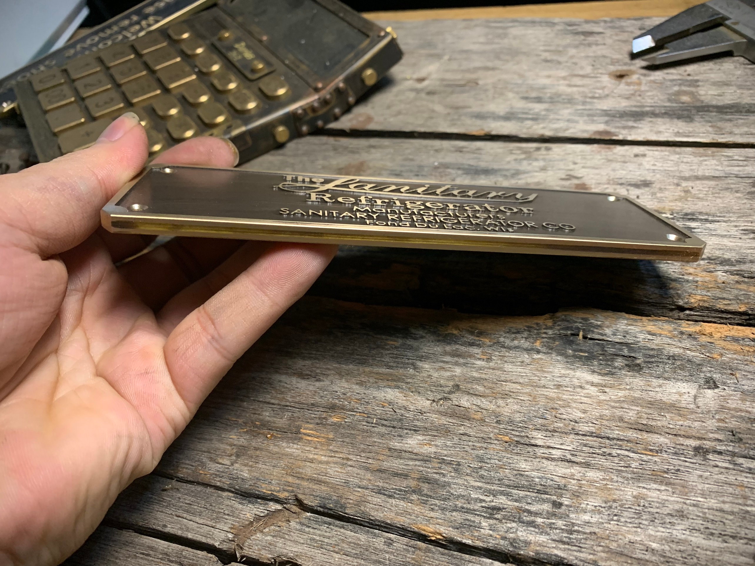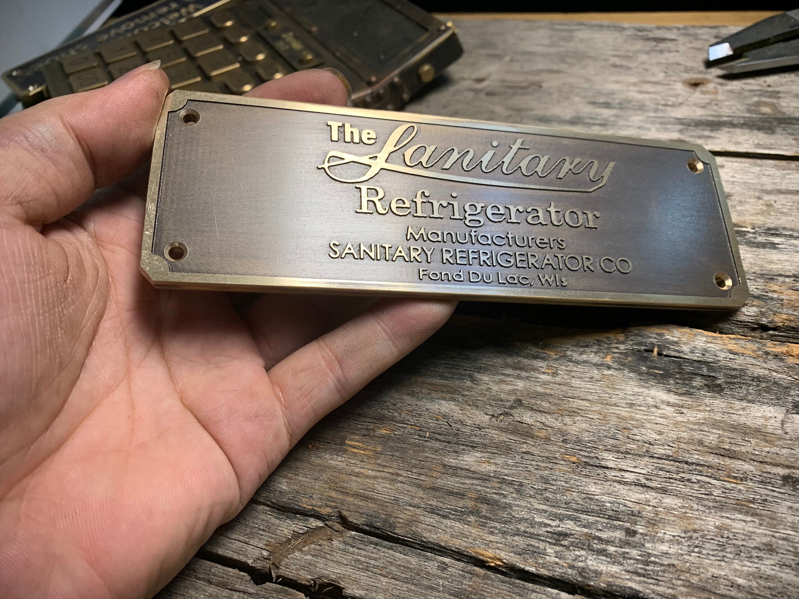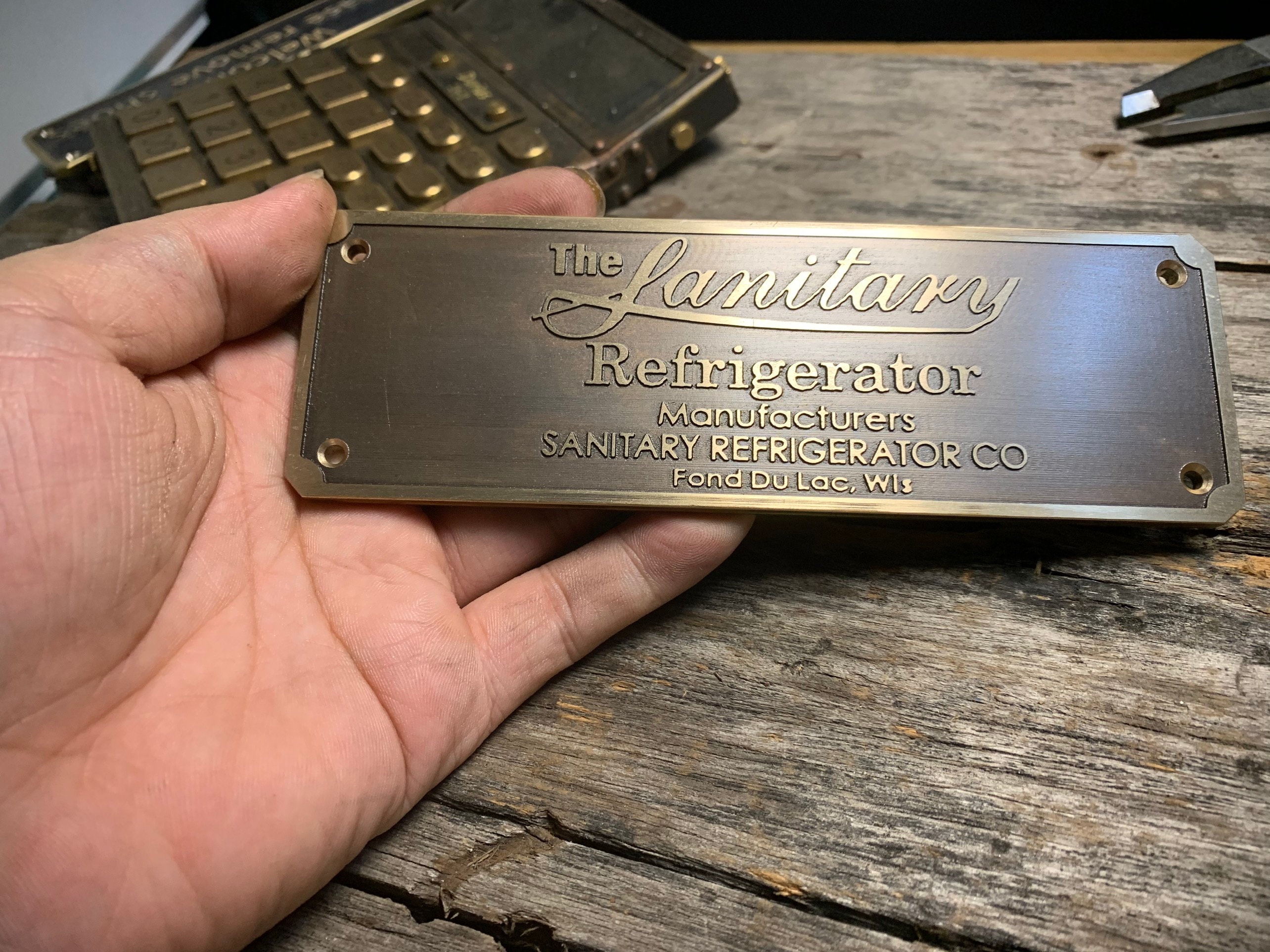 Premium solid brass industrial nameplate – precision crafted for a timeless, vintage-inspired look. Perfect for machinery labels, equipment identification, workshop signage, factory branding, or restoring antique machines.