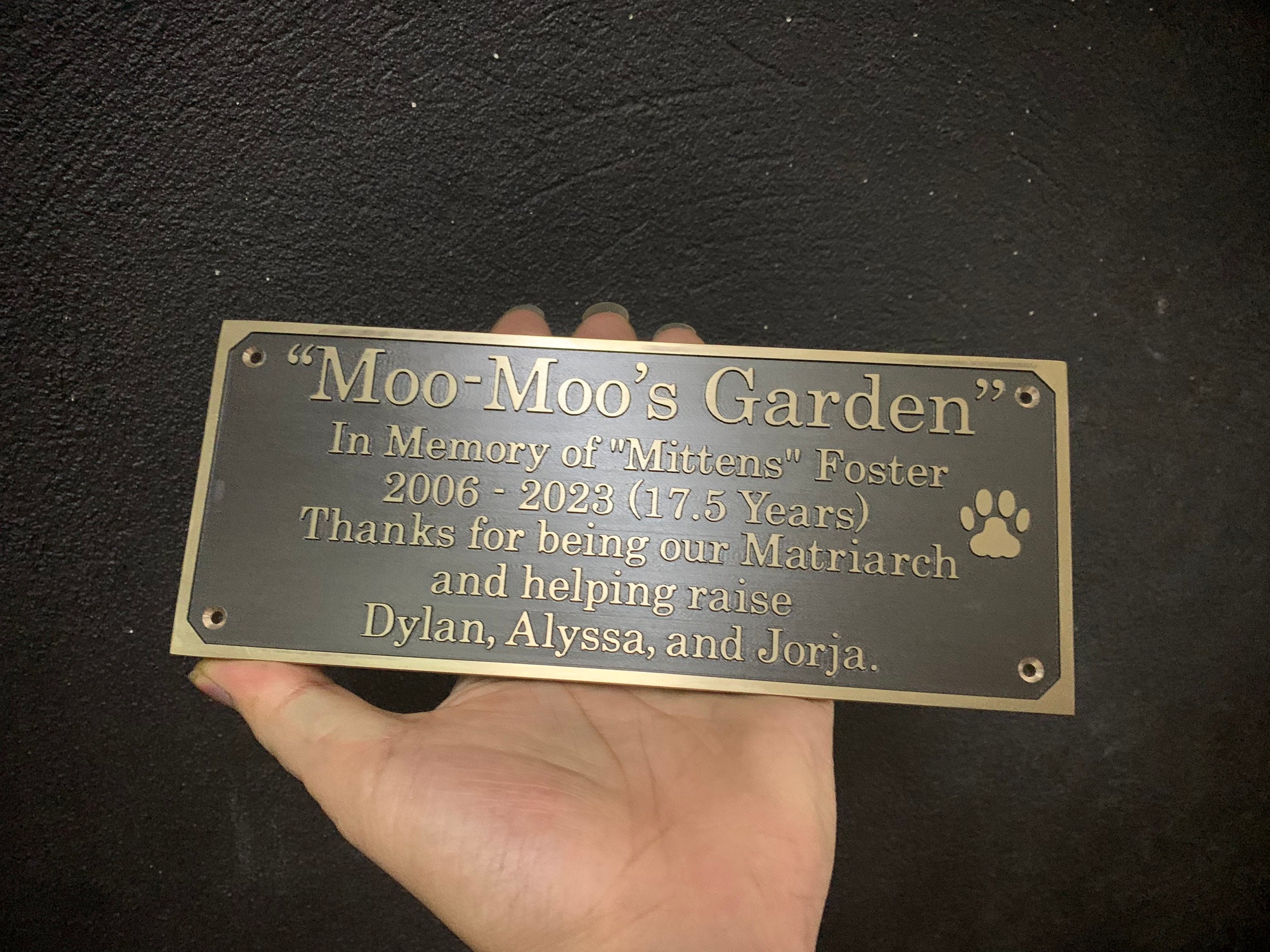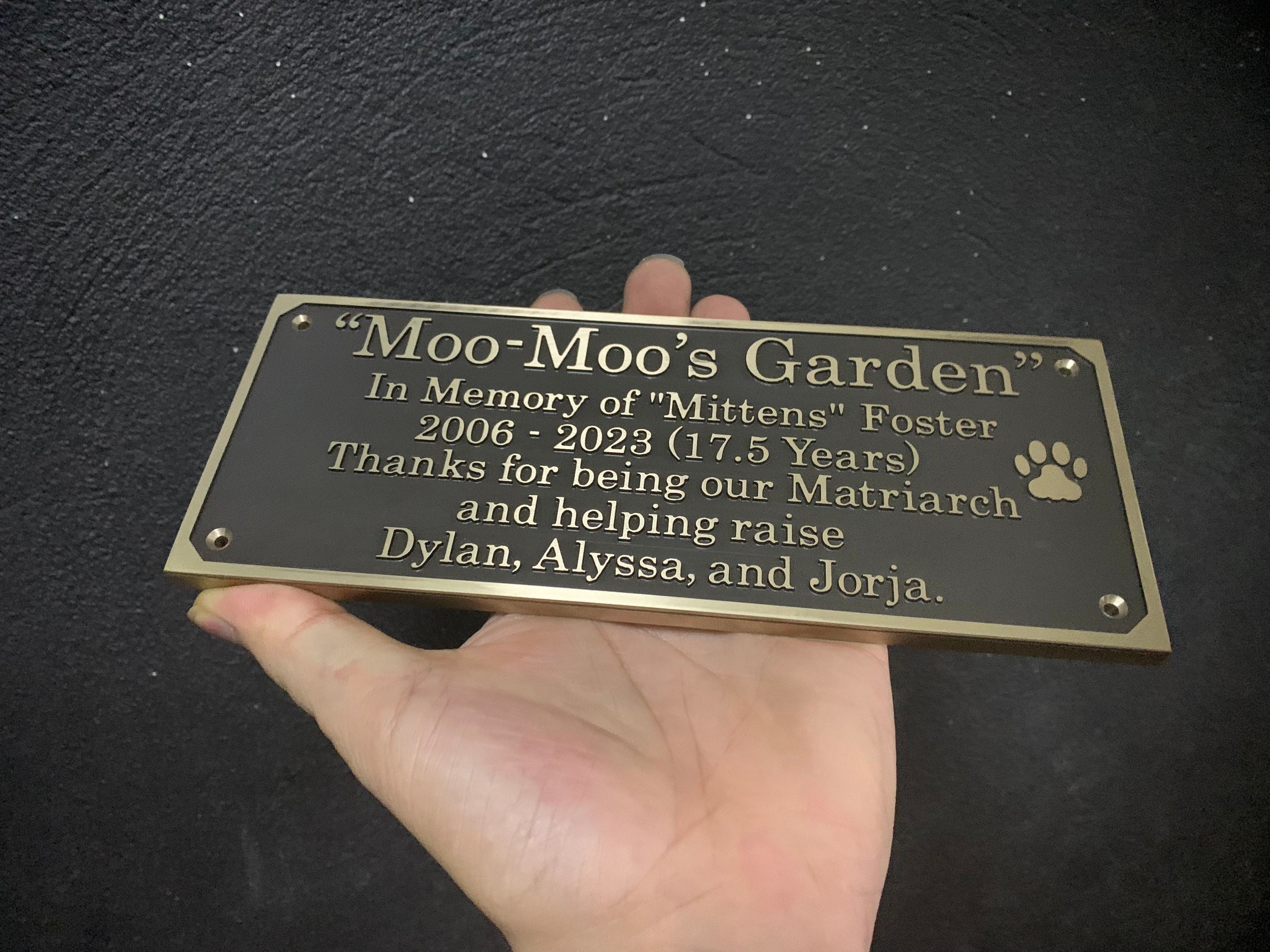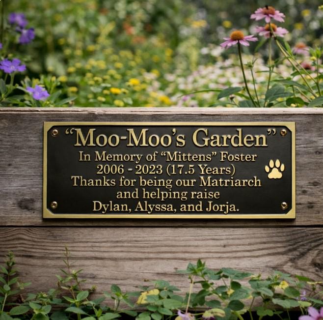 Premium solid brass pet memorial plaque – thoughtfully crafted to honor a beloved companion with warmth and lasting beauty. Ideal for gardens, outdoor spaces, or special remembrance areas.