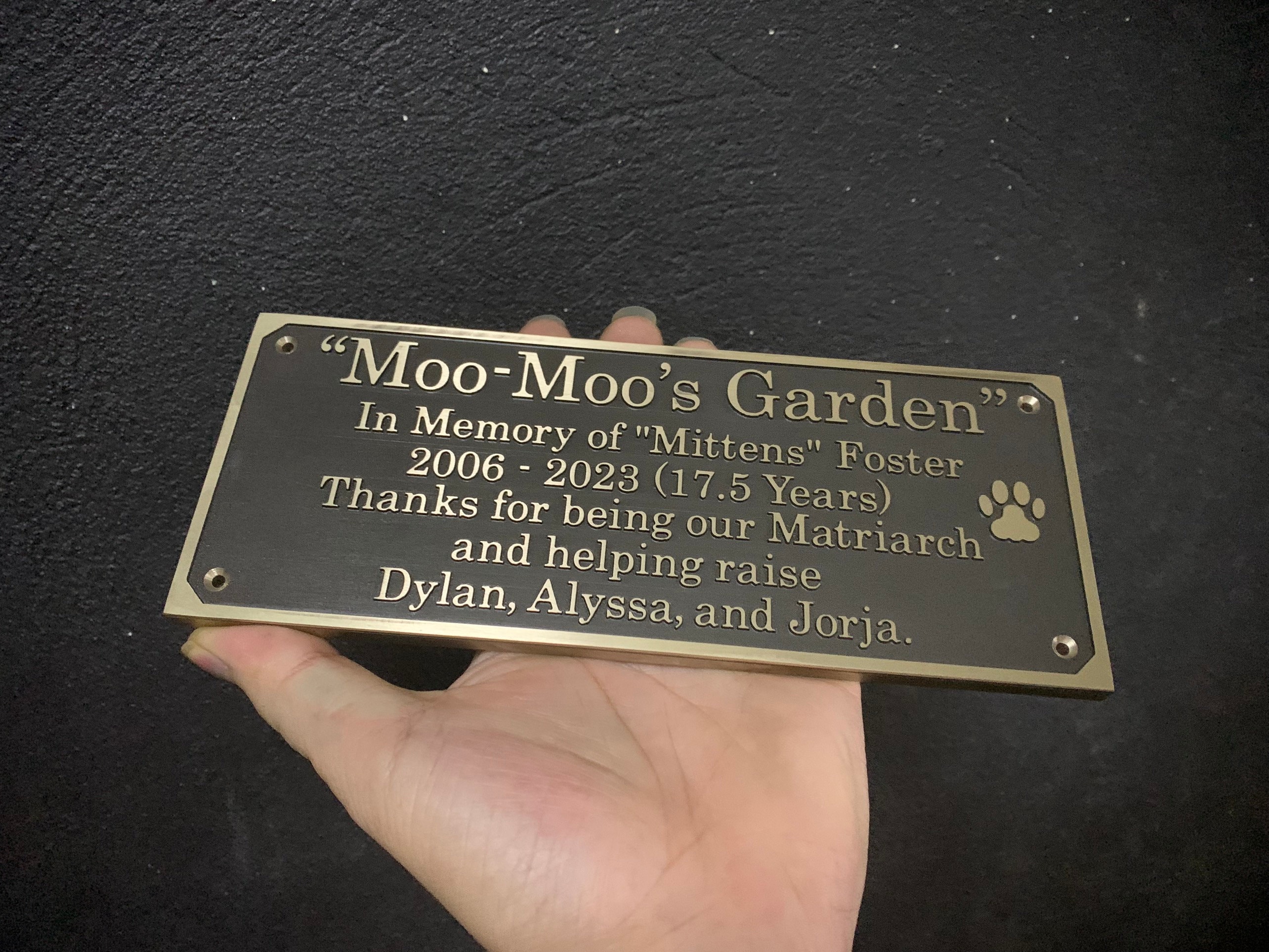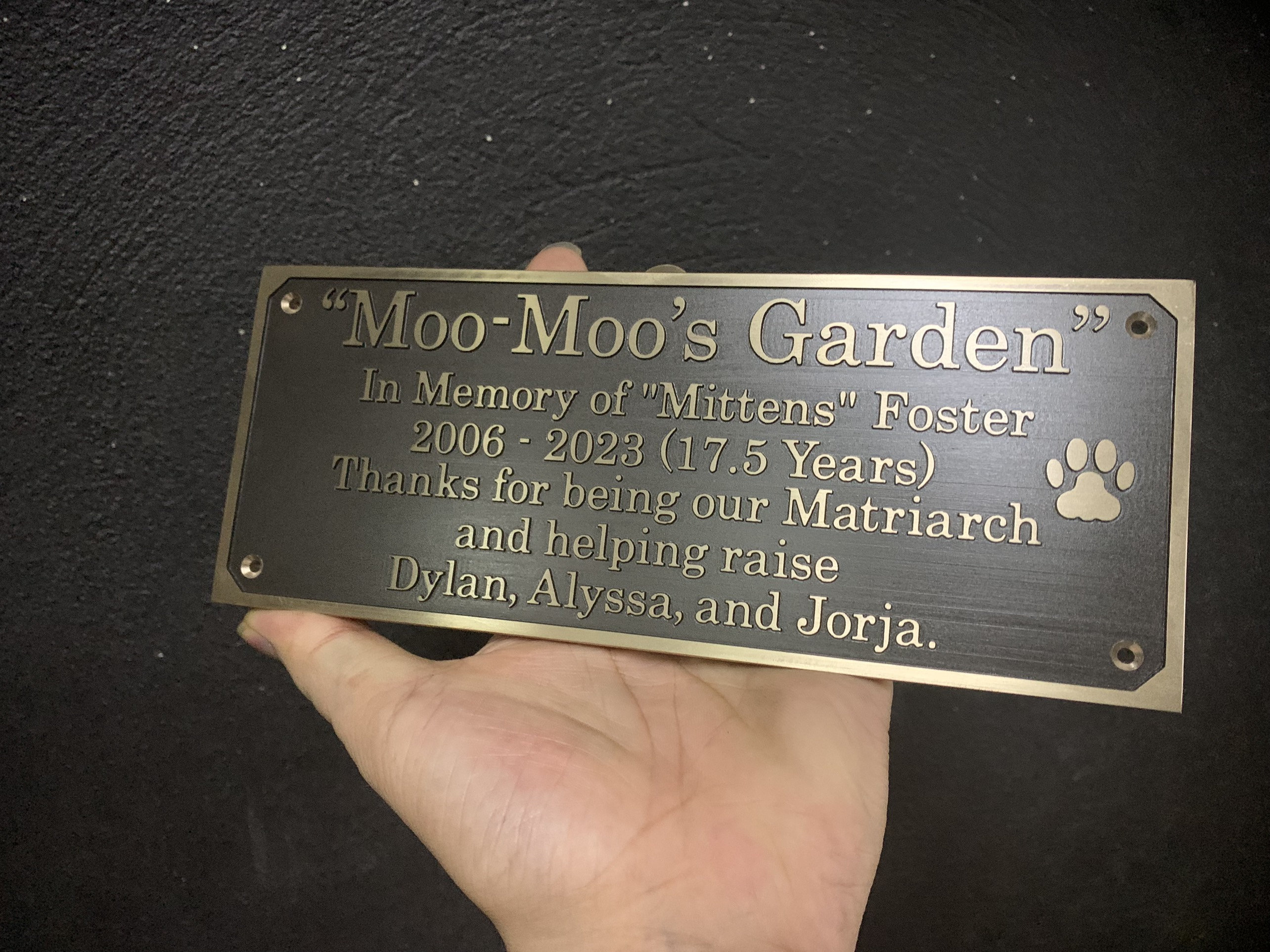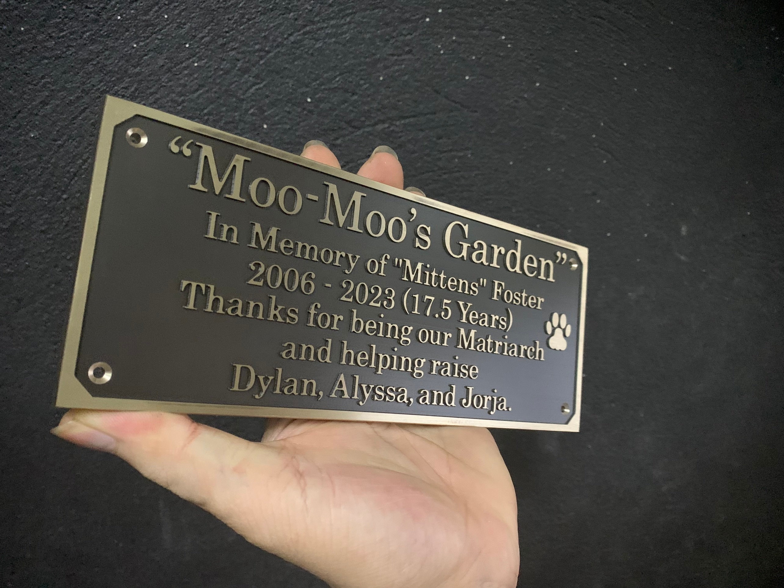 Premium solid brass pet memorial plaque – thoughtfully crafted to honor a beloved companion with warmth and lasting beauty. Ideal for gardens, outdoor spaces, or special remembrance areas.