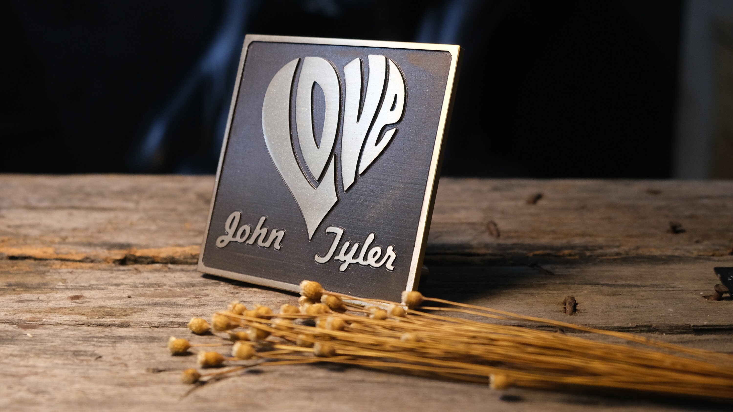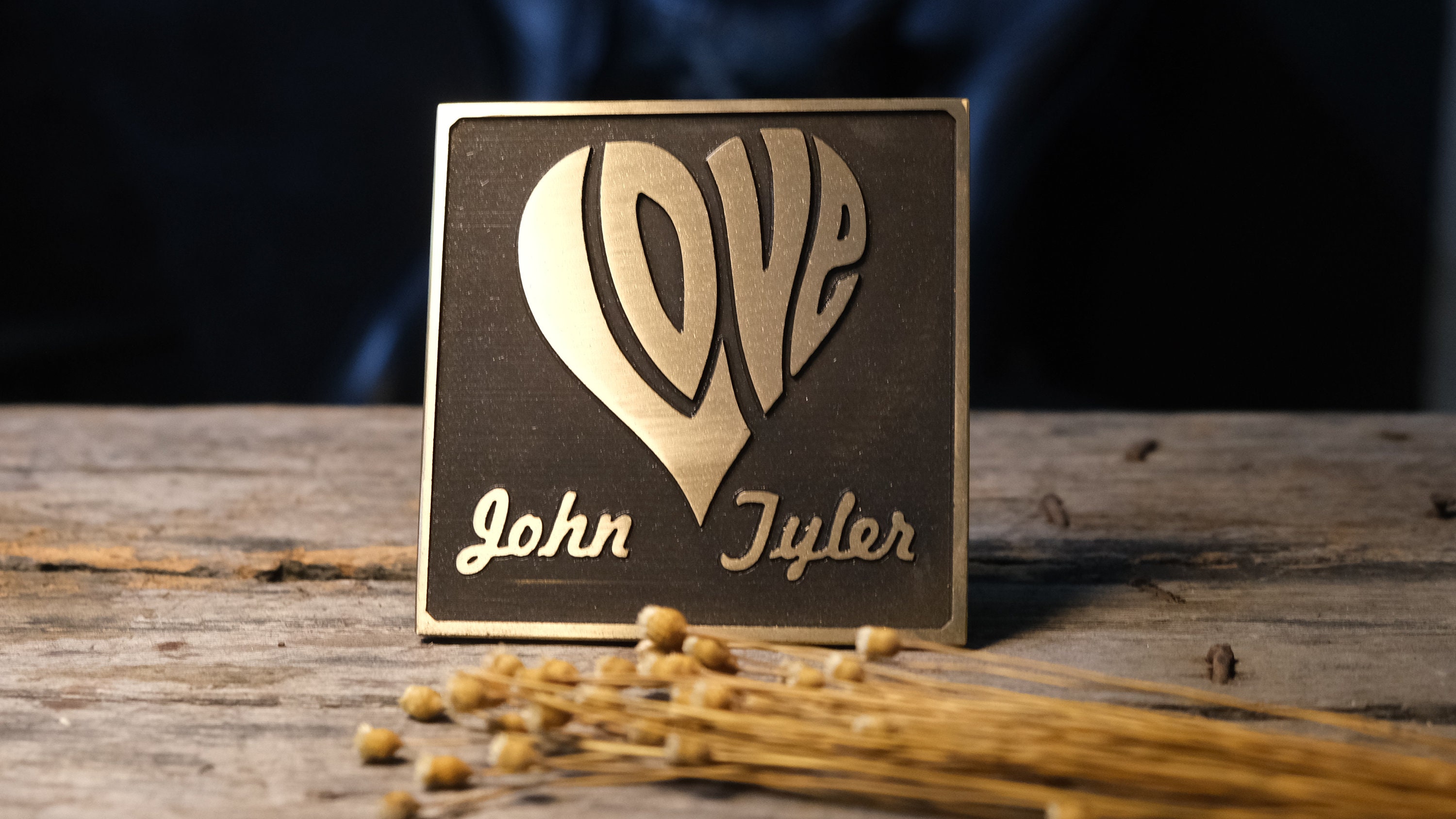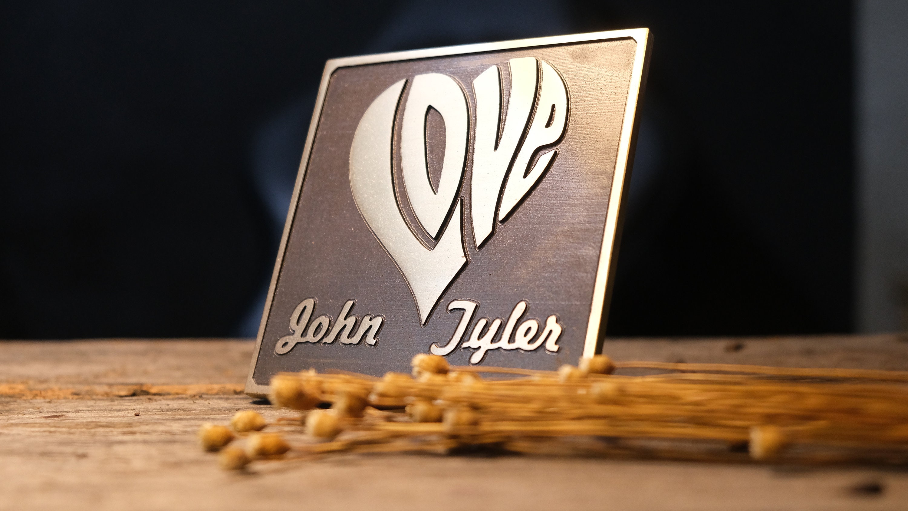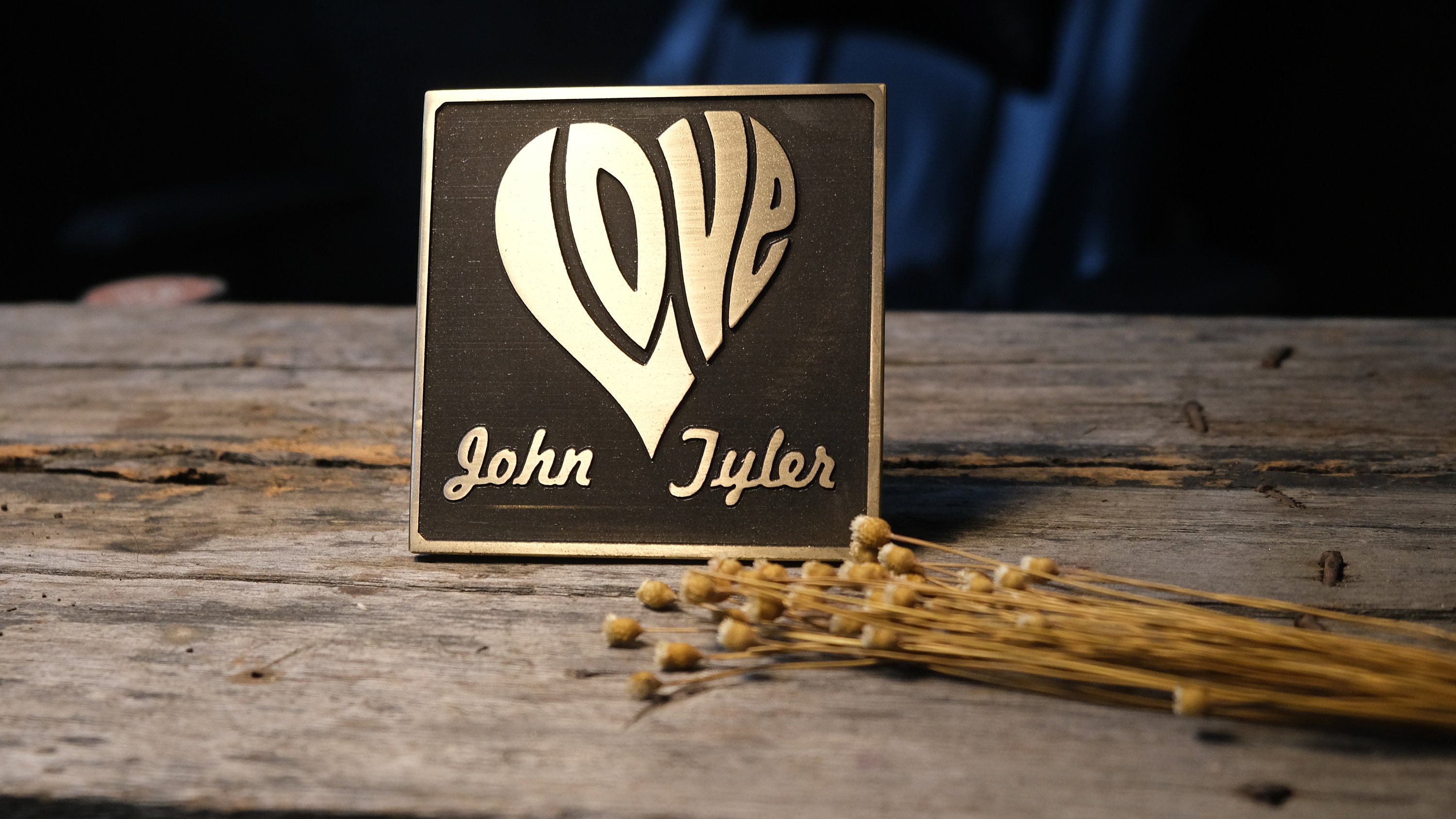 This solid-brass nameplate is perfect for personal nameplates, brand signs, door and exhibition signage, leather tags, machinery labels, artwork plates, and home or street addresses.