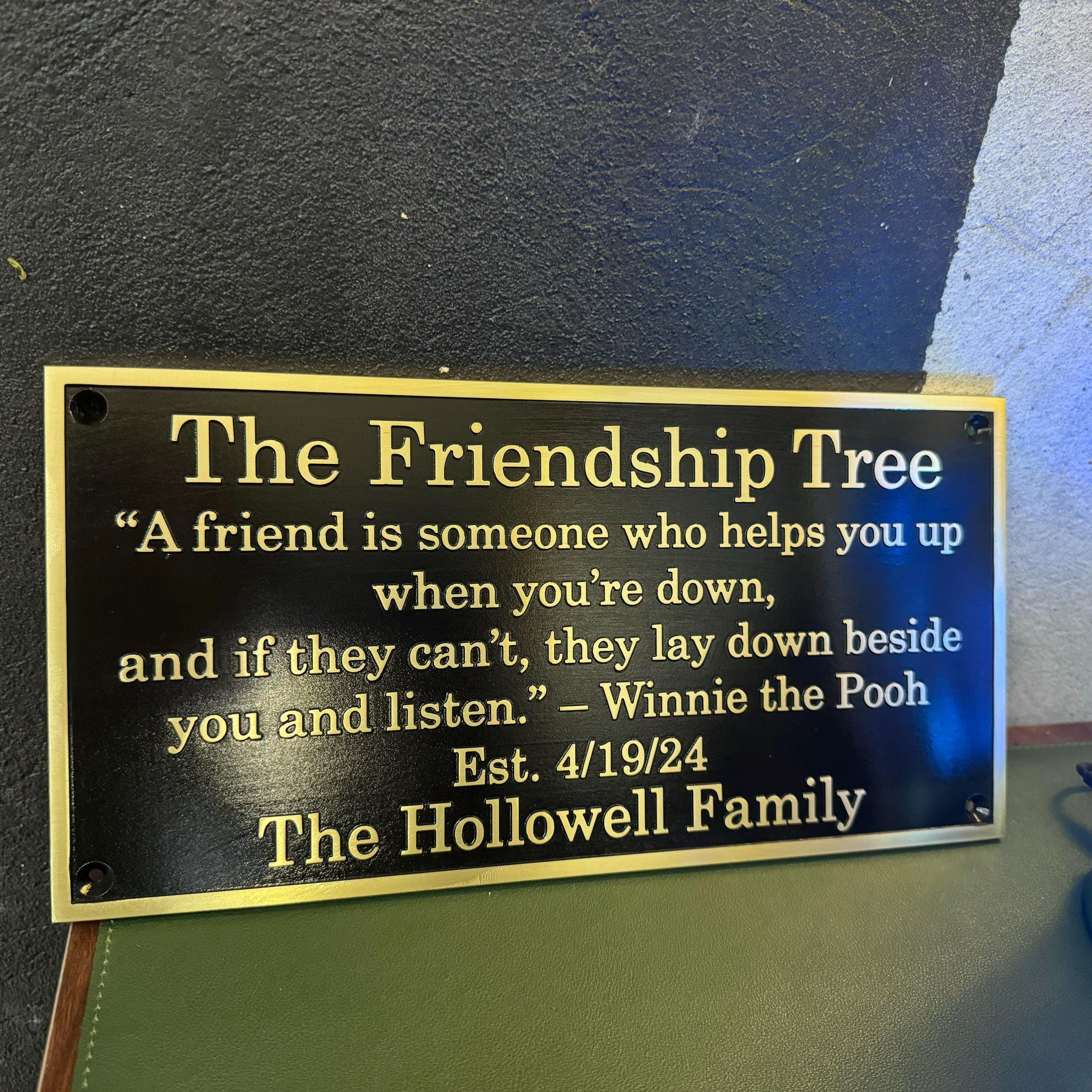 A curated font list is provided, and each mounting hole includes a matching brass screw.