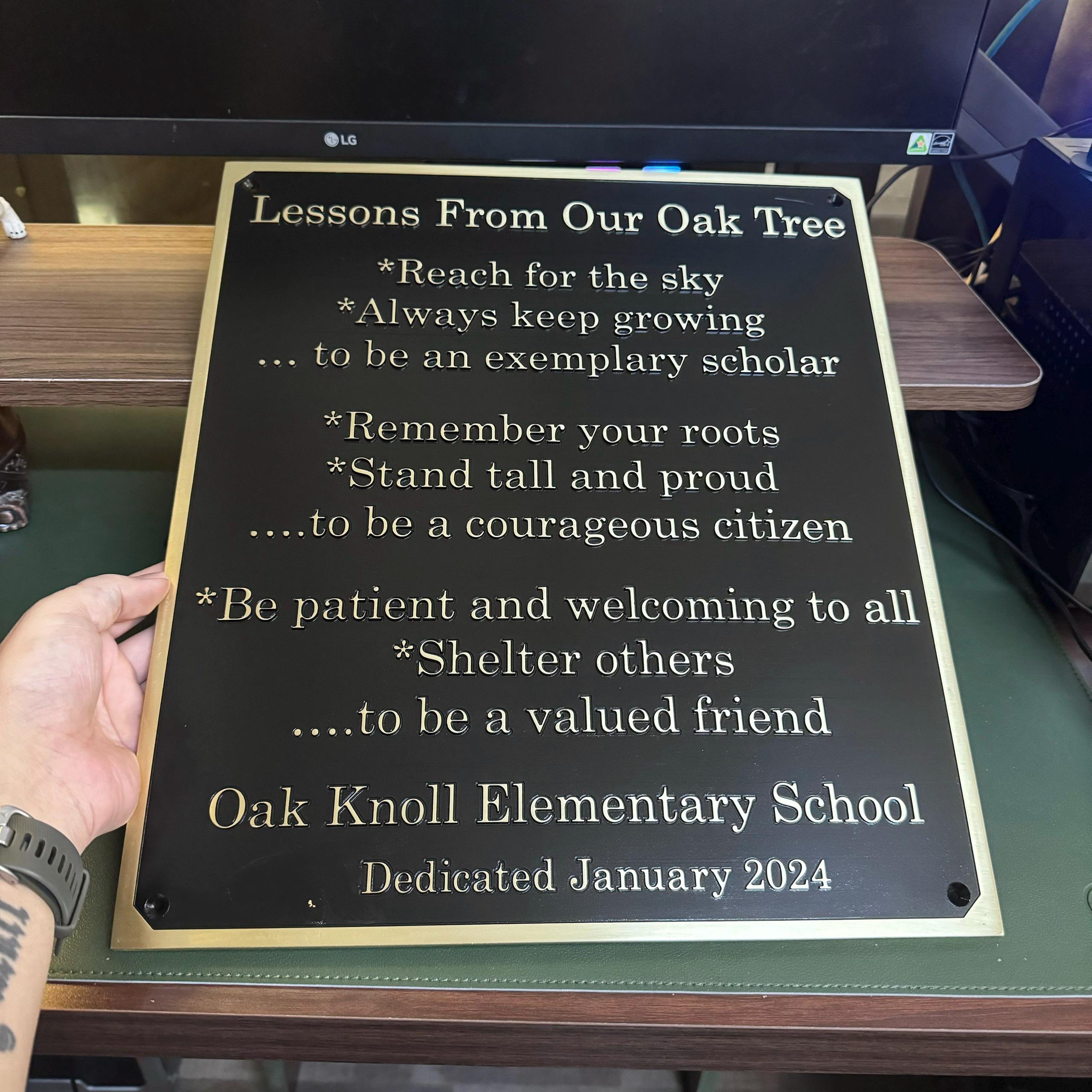Premium solid brass dedication plaque – precision crafted to honor meaningful messages, achievements, and community values. Ideal for schools, campuses, public spaces, memorials, and inspirational displays.